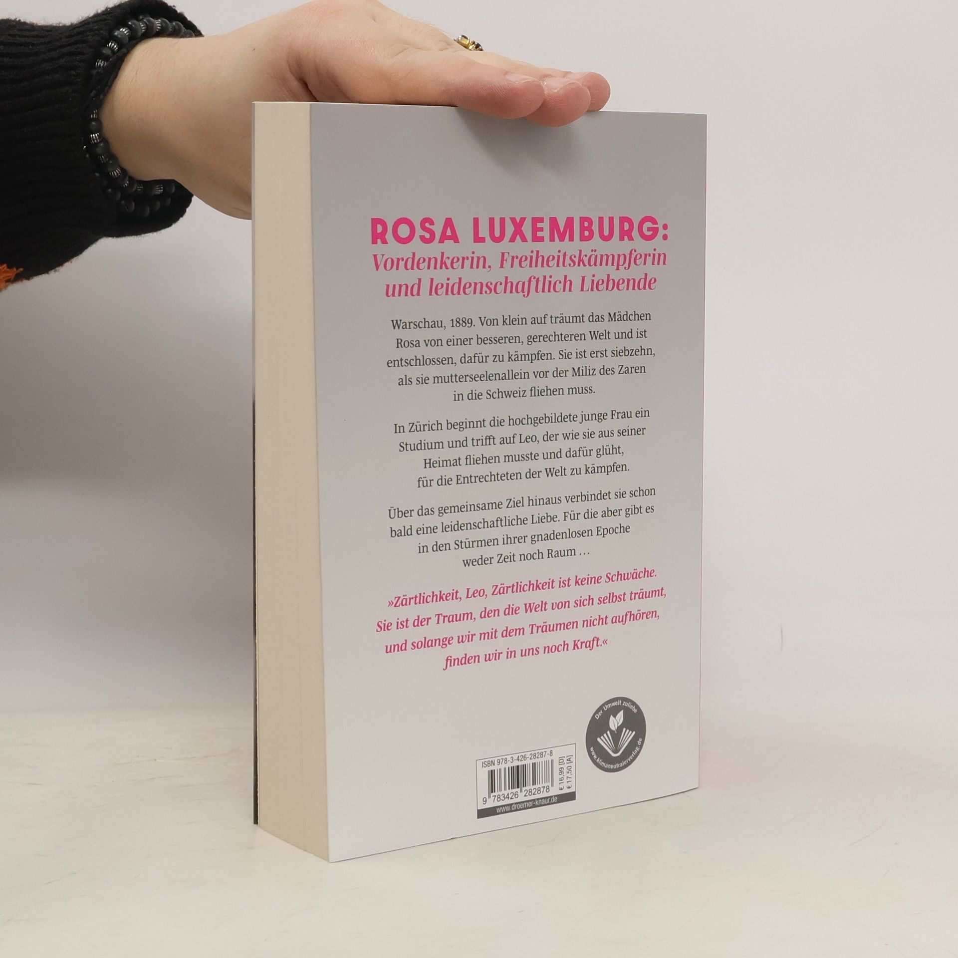 Der faszinierende biografische Roman von Bestseller-Autorin Charlotte Roth erzählt von der großen, dramatischen Liebesgeschichte zwischen der Revolutionärin Rosa Luxemburg und Leo Jogiches. Rosa Luxemburg: Vordenkerin, Freiheitskämpferin und leidenschaftlich Liebende Warschau, 1889. Von klein auf träumt das Mädchen Rosa von einer besseren, gerechteren Welt und ist entschlossen, dafür zu kämpfen. Sie ist erst siebzehn, als sie mutterseelenallein vor der Miliz des Zaren in die Schweiz fliehen muss. In Zürich beginnt die hochgebildete junge Frau ein Studium und trifft auf Leo, der wie sie aus seiner Heimat fliehen musste und dafür glüht, für die Entrechteten der Welt zu kämpfen. Über das gemeinsame Ziel hinaus verbindet sie schon bald eine leidenschaftliche Liebe. Für die aber gibt es in den Stürmen ihrer gnadenlosen Epoche weder Zeit noch Raum … Eine große Liebe in Zeiten des Aufruhrs: Mit ihrem emotional und mitreißend erzähltem historischen Roman über Rosa Luxemburg und Leo Jogiches hat Bestseller-Autorin Charlotte Roth mehr geschaffen als eine hoch spannende Roman-Biografie über eine unendlich mutige Frau: Ihr Porträt von Rosa Luxemburg lässt uns in eine dramatische Zeit großer politischer und sozialer Umwälzungen eintauchen – und einer Frau nahe kommen, die für ihre Werte genauso engagiert gekämpft hat wie um ihre Liebe.