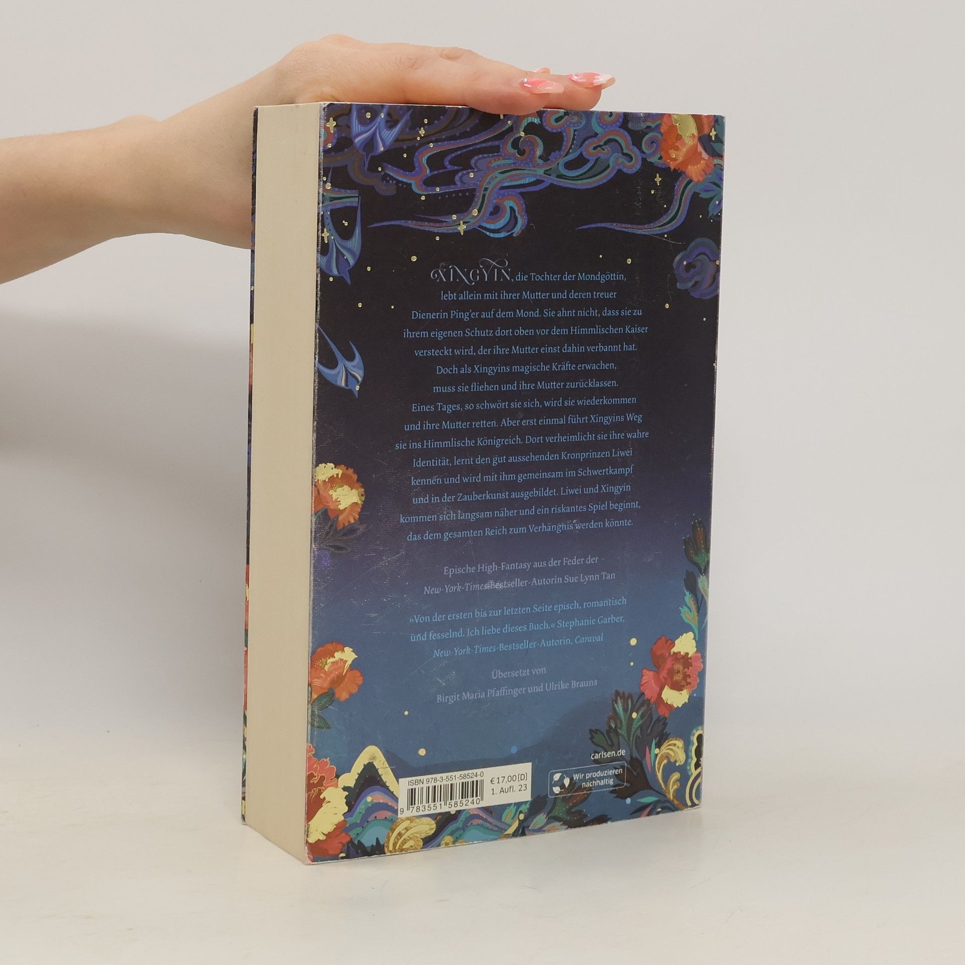 Eine junge Frau mit einem Geheimnis und ein unsterblicher Prinz. Als seine Entdeckung ihrer wahren Identität bevorsteht, gibt es kein Zurück mehr. Xingyin, die Tochter der Mondgöttin, lebt mit ihrer Mutter auf dem Mond, unwissend darüber, dass sie dort vor dem Himmlischen Kaiser versteckt wird, der ihre Mutter einst verbannt hat. Als Xingyins magische Kräfte erwachen, muss sie ihre Mutter zurücklassen. Auf ihrer Flucht schwört sie, eines Tages ihre Mutter zu retten – koste es, was es wolle. Ihr Weg führt ins Himmlische Königreich, wo sie unter falscher Identität den attraktiven Kronprinzen Liwei trifft. Gemeinsam werden sie im Schwertkampf und in der Zauberkunst ausgebildet. Liwei weckt in ihr eine unerwartete Leidenschaft, die gleichzeitig einen riskanten Pfad eröffnet, der das gesamte Reich gefährden könnte. Eine epische High-Fantasy-Dilogie, inspiriert von der Legende der chinesischen Mondgöttin, von der New-York-Times-Bestseller-Autorin Sue Lynn Tan. „Von der ersten bis zur letzten Seite episch, romantisch und fesselnd. Ich liebe dieses Buch.“ – Stephanie Garber, New-York-Times-Bestseller-Autorin. „Eine großartige Geschichte, ich warte sehnsüchtig auf Band 2!“ – Leser*innenstimme. Ein packendes Debüt mit Slow Burn Romance, Mulan-Vibes und einer Dreiecksbeziehung, das bis zur letzten Seite fesselt. *** Aufwendig veredelt mit Perlmuttschimmer und Goldakzenten und mit CHARACTER CARD in der 1. Auflage ***