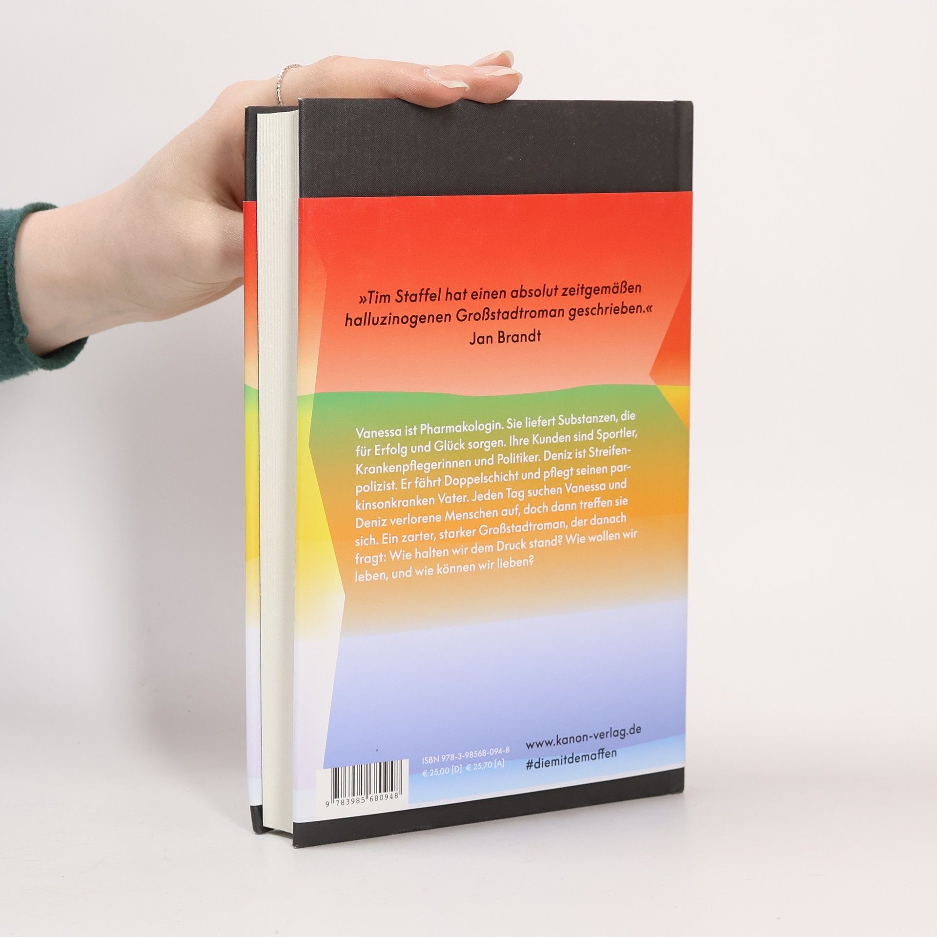 Auf der Longlist für den Deutschen Buchpreis 2023 Breaking Bad in Berlin: Vanessa liefert Glücksmittel, Deniz fährt Streife. Ihre Begegnung öffnet den Himmel über einer pulsierenden Stadt Vanessa ist Pharmakologin. Sie liefert Substanzen, die für Erfolg und Glück sorgen. Ihre Kunden sind Sportler, Krankenpflegerinnen und Politiker. Deniz ist Streifenpolizist. Er fährt Doppelschicht und pflegt seinen parkinsonkranken Vater. Jeden Tag suchen Vanessa und Deniz verlorene Menschen auf, doch dann treffen sie sich. Ein zarter, starker Großstadtroman, der danach fragt: Wie halten wir dem Druck stand? Wie wollen wir leben, und wie können wir lieben? »Sein rasendes Gespür für Rhythmus macht süchtig. Auf unsere Stadt, auf die Romantik!« Julia Franck »Tim Staffel hat einen absolut zeitgemäßen halluzinogenen Großstadtroman geschrieben.« Jan Brandt