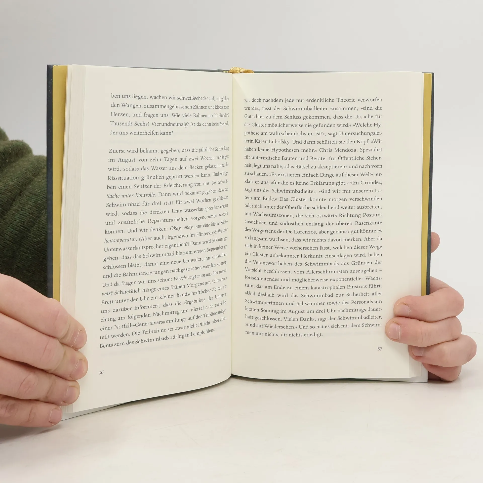In ihrem Schwimmbad fühlen sie sich zu Hause, hier können sie bei ihren täglichen Bahnen ihre Sorgen hinter sich lassen: Designer, Nonnen, Hundesitter, Veganerinnen, Polizisten, Professorinnen, Schauspieler... Bis eines Tages ein Riss erscheint – am Beckengrund, aber auch im Gedächtnis von Alice, die genau wie die anderen hier im Schwimmen stets Trost und Halt gefunden hat. Während sie bald nur noch in bruchstückhaften Erinnerungen schwimmt, versucht ihre Tochter, sich in ihre Mutter hineinzuversetzen, ihr Verhältnis zueinander neu auszuloten und Alice’ Leben Sinn und Zusammenhang zurückzugeben. Aus so unterschiedlichen wie verblüffenden Perspektiven und mit unvergleichlichem Gespür für das Komische im Tragischen schreibt Julie Otsuka über Liebe und Verlust, Trauer und Erinnerung, Mütter und Töchter und die große Frage, was wir unseren Eltern schuldig sind.