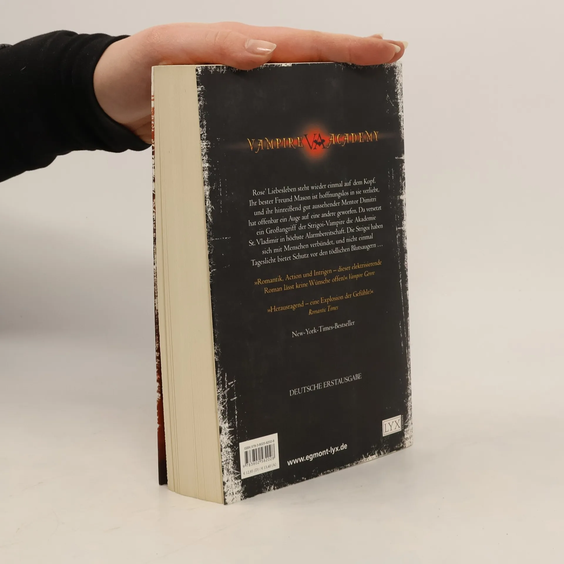 Rose Hathaways Liebesleben steht völlig Kopf. Während ihr bester Freund Mason hoffnungslos in sie verliebt ist, wirft ihr hinreißend gut aussehender Nachhilfelehrer Dimitri offenbar ein Auge auf eine andere Frau. Da versetzt ein Großangriff der Strigoi die Akademie der Vampire in höchste Alarmbereitschaft, und es wimmelt an der Schule nur so von Wächtern, darunter auch die legendäre Janine Hathaway ... Roses Mutter! Um dem Gefühlchaos die Krone aufzusetzen, muss sich Rose mit Christian, dem Ex-Freund ihrer Freundin Lissa, verbünden, um die Akademie vor drohendem Unheil zu bewahren ... Zweiter Band der Vampir-Erfolgsserie von Richelle Mead. „Romantik, Action und Intrigen - Vampire Academy lässt keine Wünsche offen.“