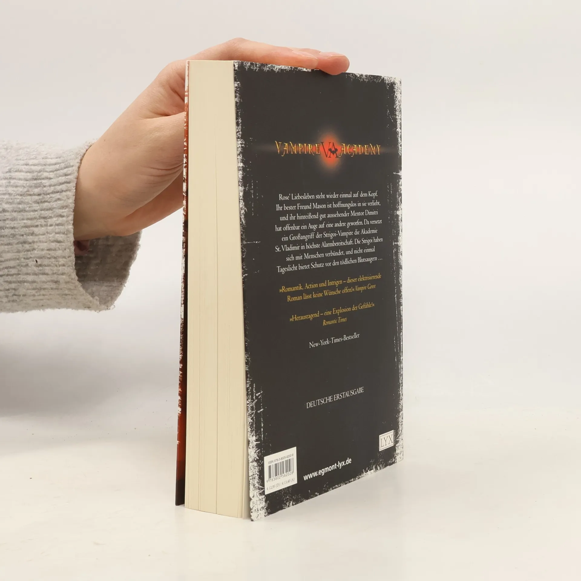 Rose Hathaways Liebesleben steht völlig Kopf. Während ihr bester Freund Mason hoffnungslos in sie verliebt ist, wirft ihr hinreißend gut aussehender Nachhilfelehrer Dimitri offenbar ein Auge auf eine andere Frau. Da versetzt ein Großangriff der Strigoi die Akademie der Vampire in höchste Alarmbereitschaft, und es wimmelt an der Schule nur so von Wächtern, darunter auch die legendäre Janine Hathaway ... Roses Mutter! Um dem Gefühlchaos die Krone aufzusetzen, muss sich Rose mit Christian, dem Ex-Freund ihrer Freundin Lissa, verbünden, um die Akademie vor drohendem Unheil zu bewahren ... Zweiter Band der Vampir-Erfolgsserie von Richelle Mead. „Romantik, Action und Intrigen - Vampire Academy lässt keine Wünsche offen.“