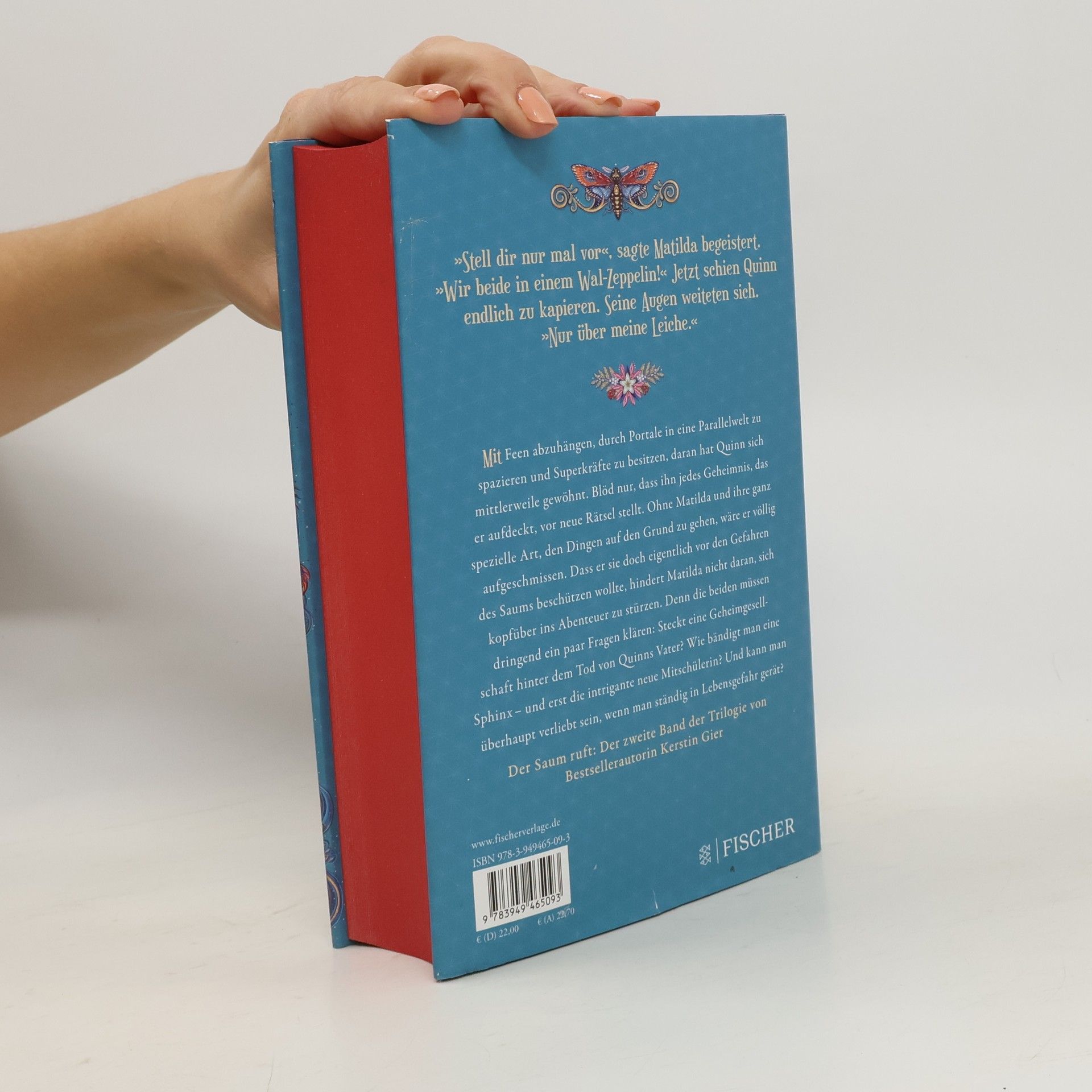 Der Saum ruft: Der zweite Band der Vergissmeinnicht-Trilogie lädt zum Träumen ein. Mit Feen abzuhängen, durch Portale in eine Parallelwelt zu spazieren und Superkräfte zu besitzen, daran hat Quinn sich mittlerweile gewöhnt. Blöd nur, dass ihn jedes Geheimnis, das er aufdeckt, vor neue Rätsel stellt. Ohne Matilda und ihre ganz spezielle Art, den Dingen auf den Grund zu gehen, wäre er völlig aufgeschmissen. Dass er sie doch eigentlich vor den Gefahren des Saums beschützen wollte, hindert Matilda nicht daran, sich kopfüber ins Abenteuer zu stürzen. Denn die beiden müssen dringend ein paar Fragen klären: Steckt eine Geheimgesellschaft hinter dem Tod von Quinns Vater? Wie bändigt man eine Sphinx– und erst die intrigante neue Mitschülerin? Und kann man überhaupt verliebt sein, wenn man ständig in Lebensgefahr gerät? »Stell dir nur mal vor«, sagte Matilda begeistert. »Wir beide in einem Wal-Zeppelin!« Jetzt schien Quinn endlich zu kapieren. Seine Augen weiteten sich. »Nur über meine Leiche.«