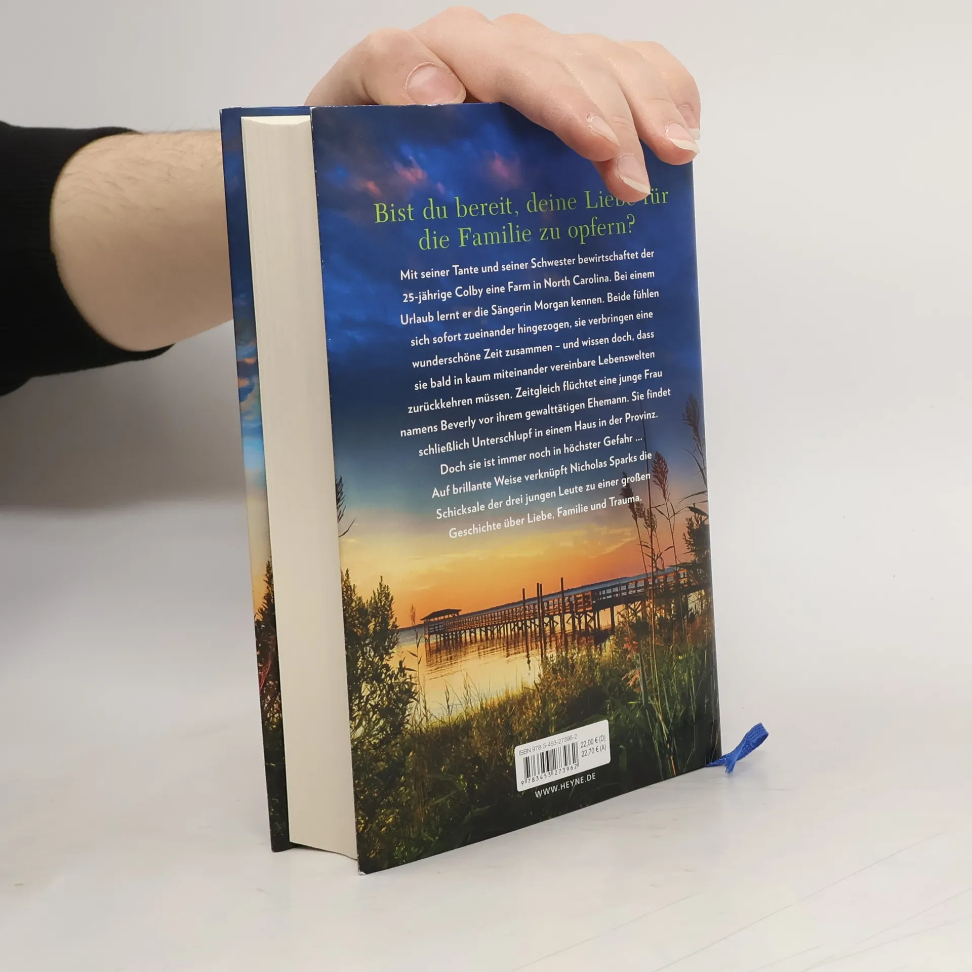 Mit seiner Tante und seiner Schwester bewirtschaftet der 25-jährige Colby eine Farm in North Carolina. Bei einem Urlaub lernt er die Sängerin Morgan kennen. Beide fühlen sich sofort zueinander hingezogen, sie verbringen eine wunderschöne Zeit zusammen – und wissen doch, dass sie bald in kaum miteinander vereinbare Lebenswelten zurückkehren müssen. Zeitgleich flüchtet eine junge Frau namens Beverly vor ihrem gewalttätigen Ehemann. Gemeinsam mit ihrem kleinen Sohn reist sie quer durch Amerika, in ständiger Angst, verfolgt zu werden. Schließlich findet sie Unterschlupf in einem heruntergekommenen Haus in der Provinz. Doch sie ist immer noch in höchster Gefahr … Auf brillante Weise verknüpft Nicholas Sparks die Schicksale der drei jungen Leute zu einer großen Geschichte über Familie, Trauma und Liebe.