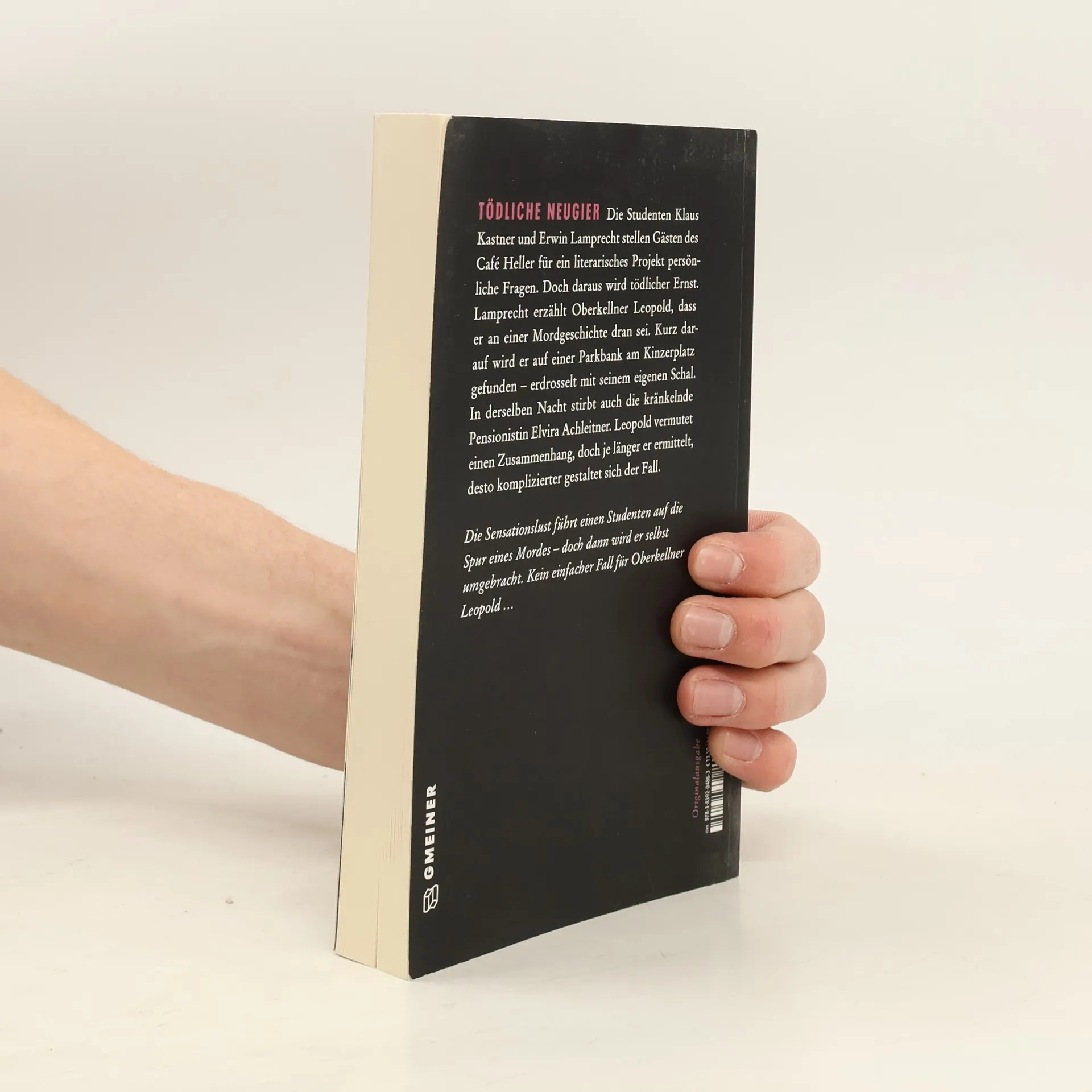 Die Studenten Klaus Kastner und Erwin Lamprecht stellen Gästen des Café Heller für ein literarisches Projekt persönliche Fragen. Doch daraus wird tödlicher Ernst. Lamprecht erzählt Oberkellner Leopold, dass er an einer Mordgeschichte dran sei. Kurz darauf wird er auf einer Parkbank am Kinzerplatz gefunden - erdrosselt mit seinem eigenen Schal. In derselben Nacht stirbt auch die kränkelnde Pensionistin Elvira Achleitner. Leopold vermutet einen Zusammenhang, doch je länger er ermittelt, desto komplizierter gestaltet sich der Fall.