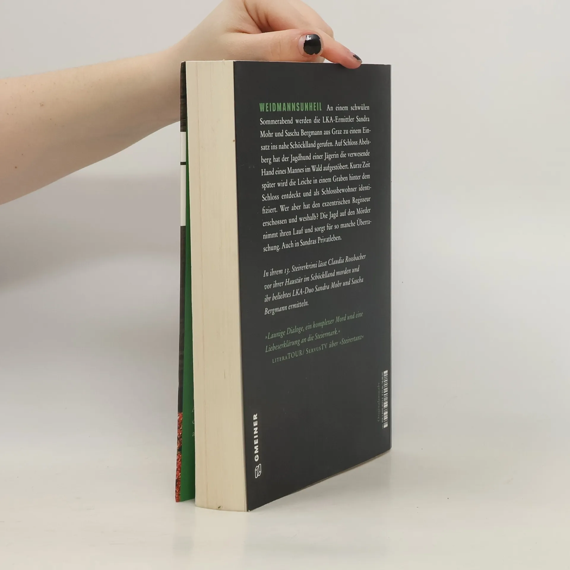 An einem schwülen Sommerabend werden die LKA-Ermittler Sandra Mohr und Sascha Bergmann aus Graz zu einem Einsatz ins nahe Schöcklland gerufen. Auf Schloss Abelsberg hat der Jagdhund einer Jägerin die verwesende Hand eines Mannes im Wald aufgestöbert. Kurze Zeit später wird die Leiche in einem Graben hinter dem Schloss entdeckt und als Schlossbewohner identifiziert. Wer aber hat den exzentrischen Regisseur erschossen und weshalb? Die Jagd auf den Mörder nimmt ihren Lauf und sorgt für so manche Überraschung. Auch in Sandras Privatleben.