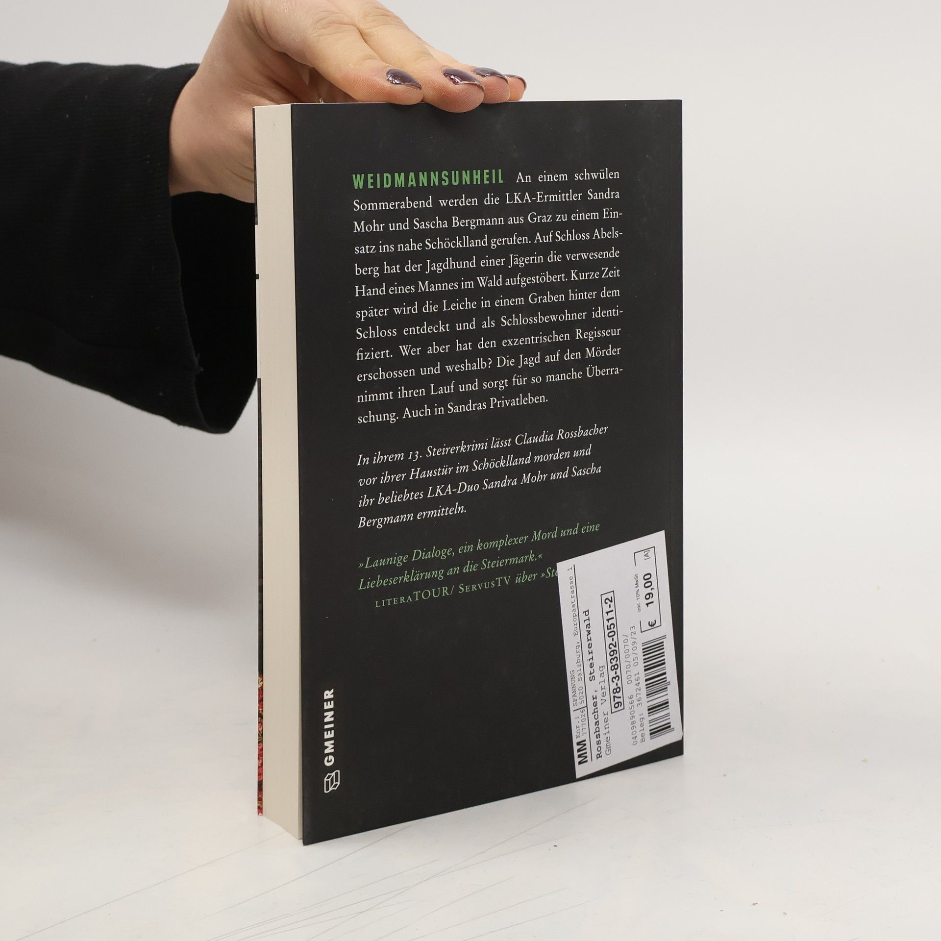 An einem schwülen Sommerabend werden die LKA-Ermittler Sandra Mohr und Sascha Bergmann aus Graz zu einem Einsatz ins nahe Schöcklland gerufen. Auf Schloss Abelsberg hat der Jagdhund einer Jägerin die verwesende Hand eines Mannes im Wald aufgestöbert. Kurze Zeit später wird die Leiche in einem Graben hinter dem Schloss entdeckt und als Schlossbewohner identifiziert. Wer aber hat den exzentrischen Regisseur erschossen und weshalb? Die Jagd auf den Mörder nimmt ihren Lauf und sorgt für so manche Überraschung. Auch in Sandras Privatleben.