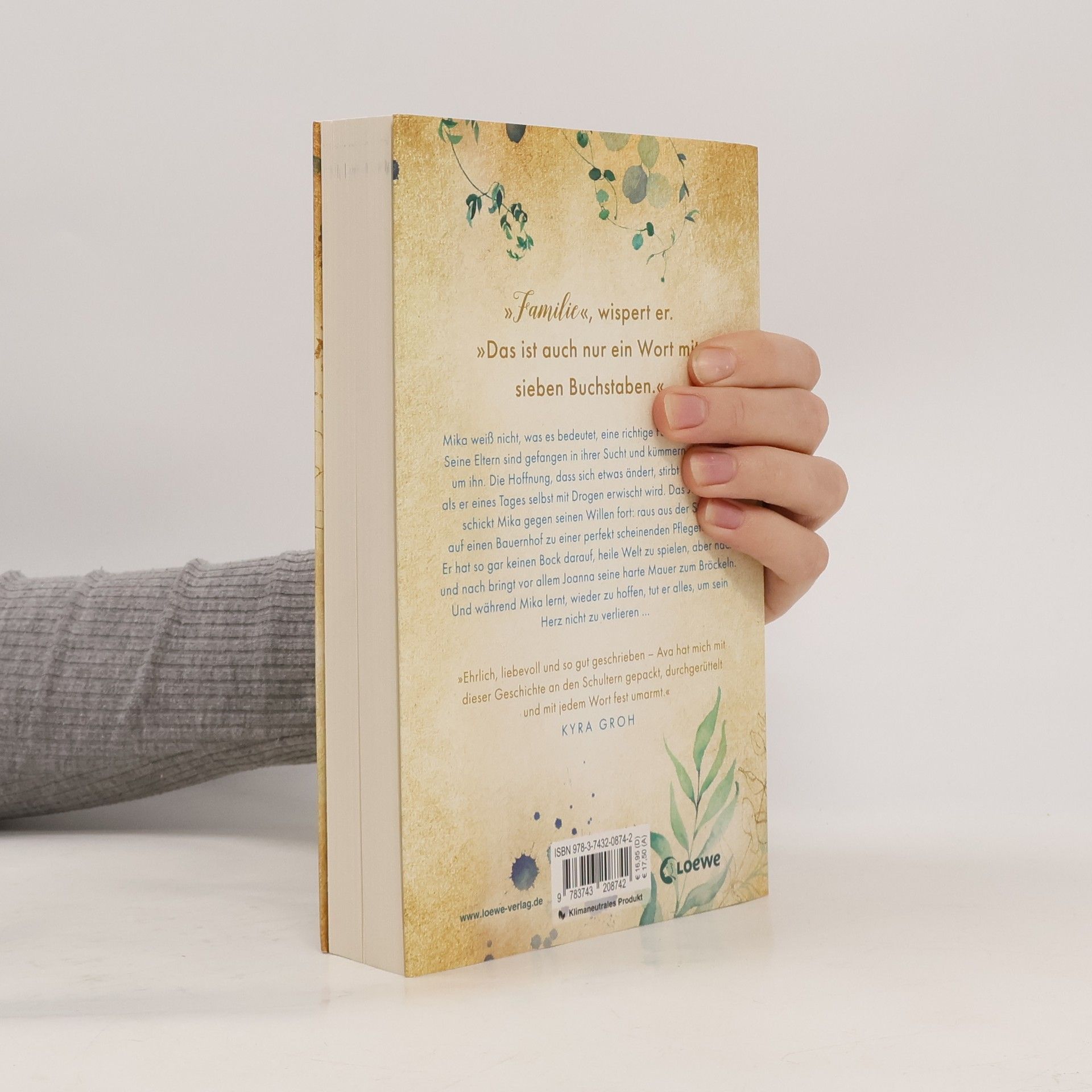 »Familie«, wispert er. »Das ist auch nur ein Wort mit sieben Buchstaben.« Mika weiß nicht, was es bedeutet, eine richtige Familie zu haben. Seine Eltern sind gefangen in ihrer Sucht und kümmern sich kaum um ihn. Die Hoffnung, dass sich etwas ändert, stirbt endgültig, als er eines Tages selbst mit Drogen erwischt wird. Das Jugendamt schickt Mika gegen seinen Willen fort: raus aus der Stadt, auf einen Bauernhof zu einer perfekt scheinenden Pflegefamilie. Er hat so gar keinen Bock darauf, heile Welt zu spielen, aber nach und nach bringt vor allem Joanna seine harte Mauer zum Bröckeln. Und während Mika lernt, wieder zu hoffen, tut er alles, um sein Herz nicht zu verlieren … Ein gefühlvoller Roman über die Vielseitigkeit der Familie In ihrem neuen Jugendroman für Leser*innen ab 14 Jahren geht SPIEGEL-Bestsellerautorin Ava Reed einfühlsam auf schwierige Themen wie Drogensucht , Gewalt und Ausgrenzung ein und zeigt auf, dass Familie so viel mehr ist als nur ein Wort mit sieben Buchstaben. Klimaneutrales Produkt – Wir unterstützen ausgewählte Klimaprojekte!