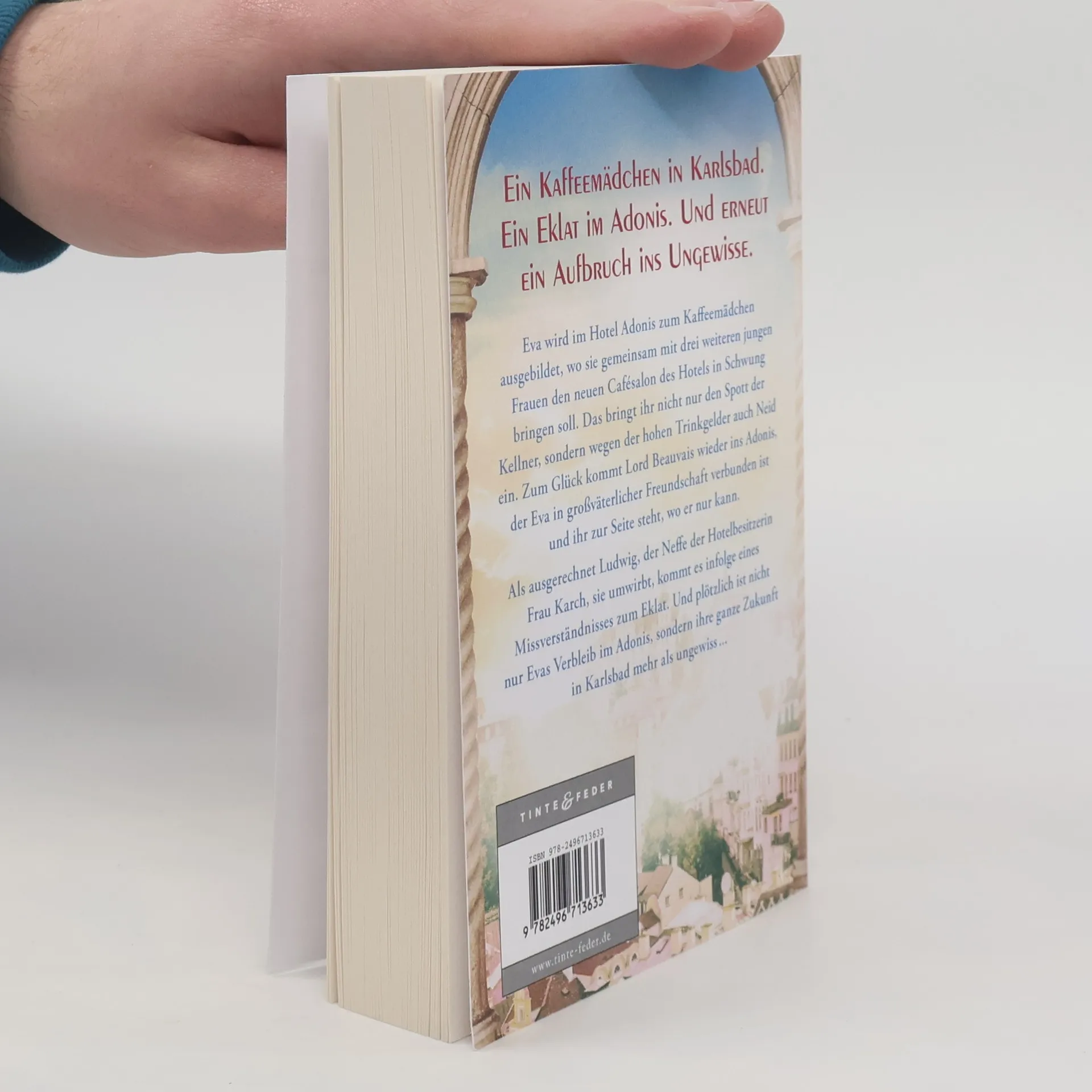 Die junge Eva geht weiter ihren Weg in der mondänen Hotelwelt Karlsbads Ein Kaffeemädchen in Karlsbad. Ein Eklat im Adonis. Und erneut ein Aufbruch ins Ungewisse Eva wird im Hotel Adonis zum Kaffeemädchen ausgebildet, wo sie gemeinsam mit drei weiteren jungen Frauen den neuen Cafésalon des Hotels in Schwung bringen soll. Das bringt ihr nicht nur den Spott der Kellner, sondern wegen der hohen Trinkgelder auch Neid ein. Zum Glück kommt Lord Beauvais wieder ins Adonis, der Eva in großväterlicher Freundschaft verbunden ist und ihr zur Seite steht, wo er nur kann. Als ausgerechnet Ludwig, der Neffe der Hotelbesitzerin Frau Karch, sie umwirbt, kommt es infolge eines Missverständnisses zum Eklat. Und plötzlich ist nicht nur Evas Verbleib im Adonis, sondern ihre ganze Zukunft in Karlsbad mehr als ungewiss …