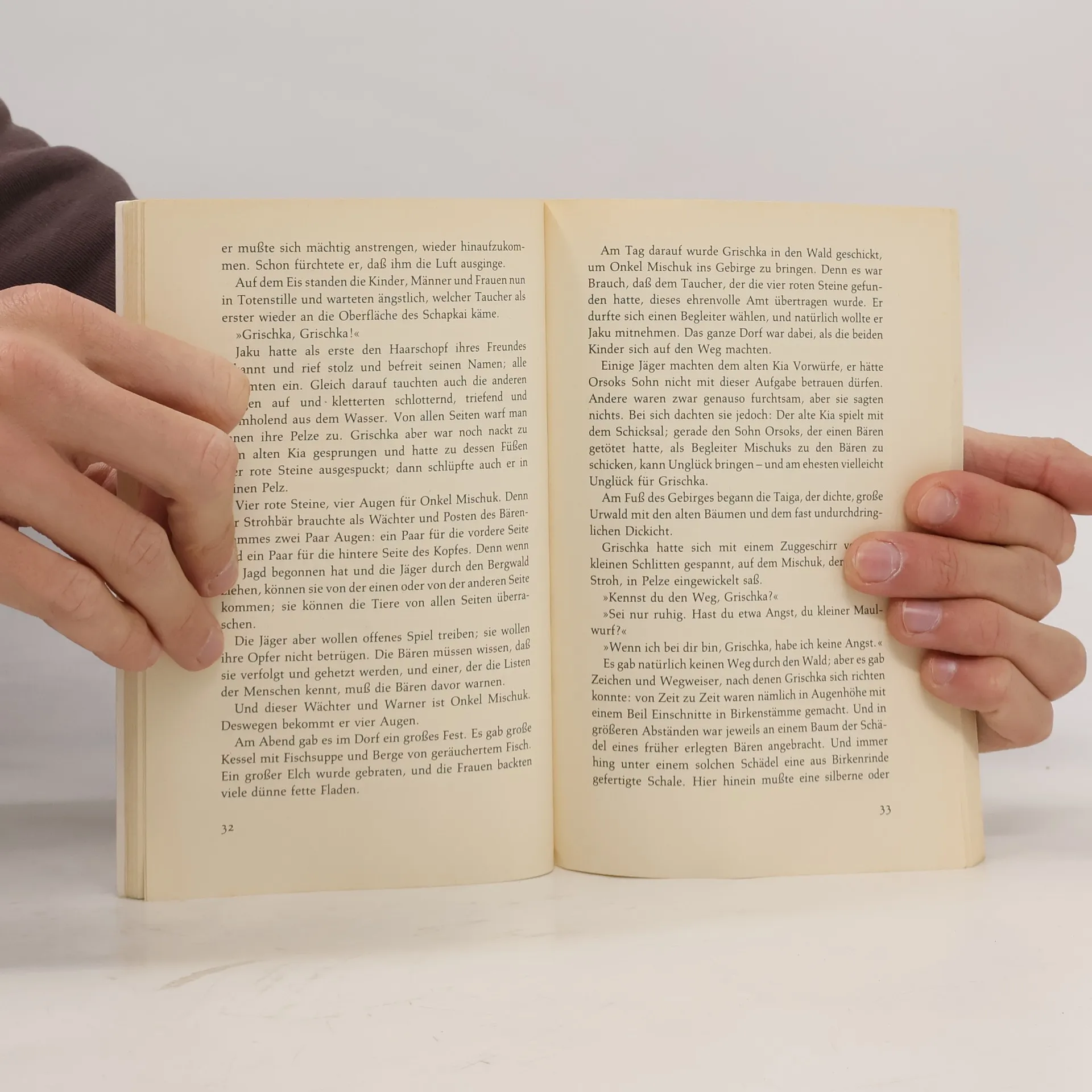 Grischka, der Tuschkenenjunge, lebt mit seinem Stamm in einem kleinen Dorf in der Tundra. Grischkas Vater ist Pelztierjäger. Wegen eines Streits muss er die Dorfgemeinschaft verlassen. Grischka bleibt zurück und lebt in der Jurte des Stammesältesten. Zusammen mit seiner Freundin, der Häuptlingstochter Jaku, streift er durch Tundra und Wälder. Eines Tages trifft er auf eine von Jägern verfolgte Bärin, die ein Junges zurücklässt. Grischka nimmt den kleinen Bären mit ins Dorf und zieht ihn dort auf. Aber bald muss er um seinen Schützling kämpfen.§§