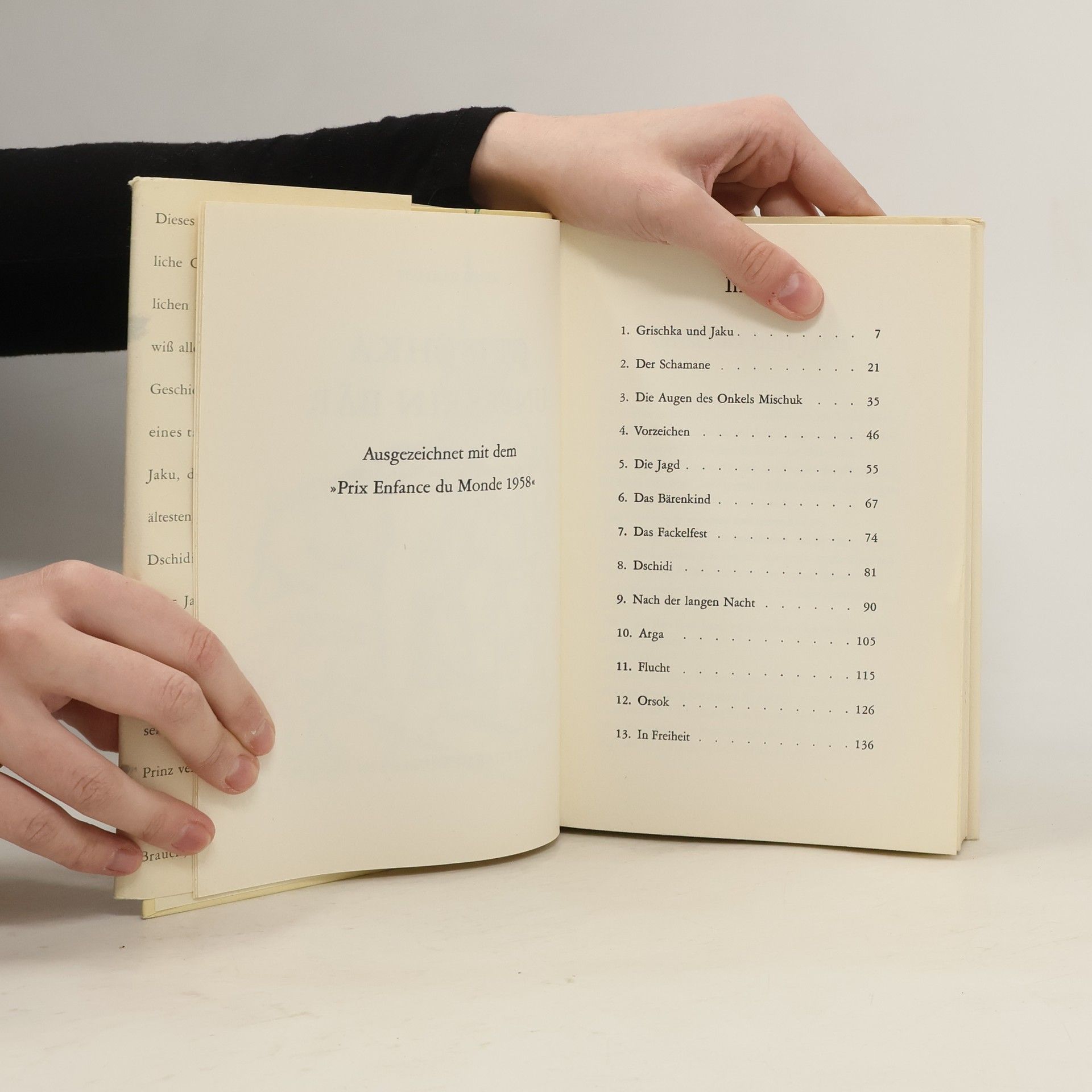 Grischka, der Tuschkenenjunge, lebt mit seinem Stamm in einem kleinen Dorf in der Tundra. Grischkas Vater ist Pelztierjäger. Wegen eines Streits muss er die Dorfgemeinschaft verlassen. Grischka bleibt zurück und lebt in der Jurte des Stammesältesten. Zusammen mit seiner Freundin, der Häuptlingstochter Jaku, streift er durch Tundra und Wälder. Eines Tages trifft er auf eine von Jägern verfolgte Bärin, die ein Junges zurücklässt. Grischka nimmt den kleinen Bären mit ins Dorf und zieht ihn dort auf. Aber bald muss er um seinen Schützling kämpfen.§§