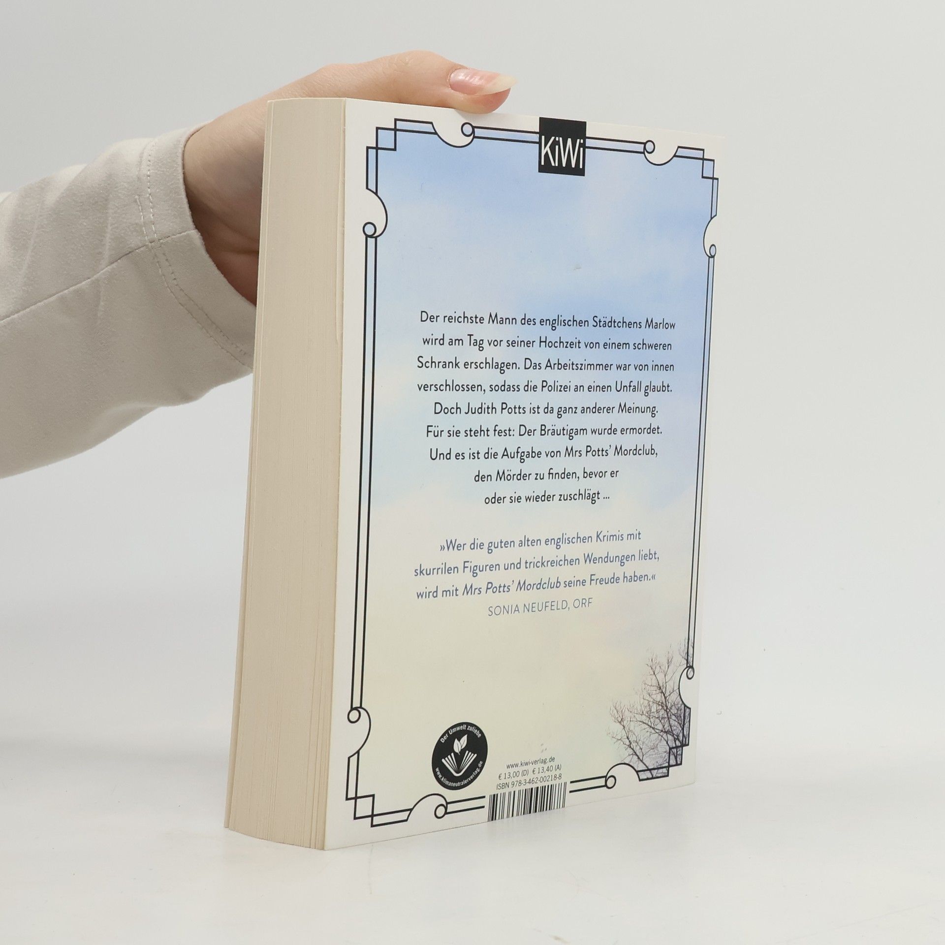 So geht englischer Krimi: Der reichste Mann Marlows wird am Tag vor seiner Hochzeit von einem schweren Schrank erschlagen. Ein neuer Fall für Mrs Potts’ Mordclub. Seit den Ereignissen des letzten Jahres haben Judith, Suzie und Becks eine angenehme und langweilig-mordfreie Zeit verbracht. Das Aufregendste, was ihnen bevorsteht, ist die Hochzeit des Marlow-Granden Sir Peter Bailey mit der viel jüngeren Krankenschwester Jenny Page. Sir Peter gibt am Tag vor der Hochzeit eine Party in seinem großen Herrenhaus an der Themse, und Judith und Co. freuen sich auf ein bisschen Gratis-Champagner. Doch während der Feierlichkeiten ertönt aus dem Haus ein lautes Krachen, und als alle ins Haus stürzen, finden sie den Bräutigam von einem schweren Schrank erschlagen in seinem Arbeitszimmer vor. Das Arbeitszimmer war von innen verschlossen, sodass die Polizei an einen Unfall glaubt. Doch Judith Potts ist da ganz anderer Meinung. Für sie steht fest: Peter wurde ermordet. Und es ist die Aufgabe des Mrs Potts’ Mordclub, den Mörder zu finden, bevor er oder sie wieder zuschlägt …
