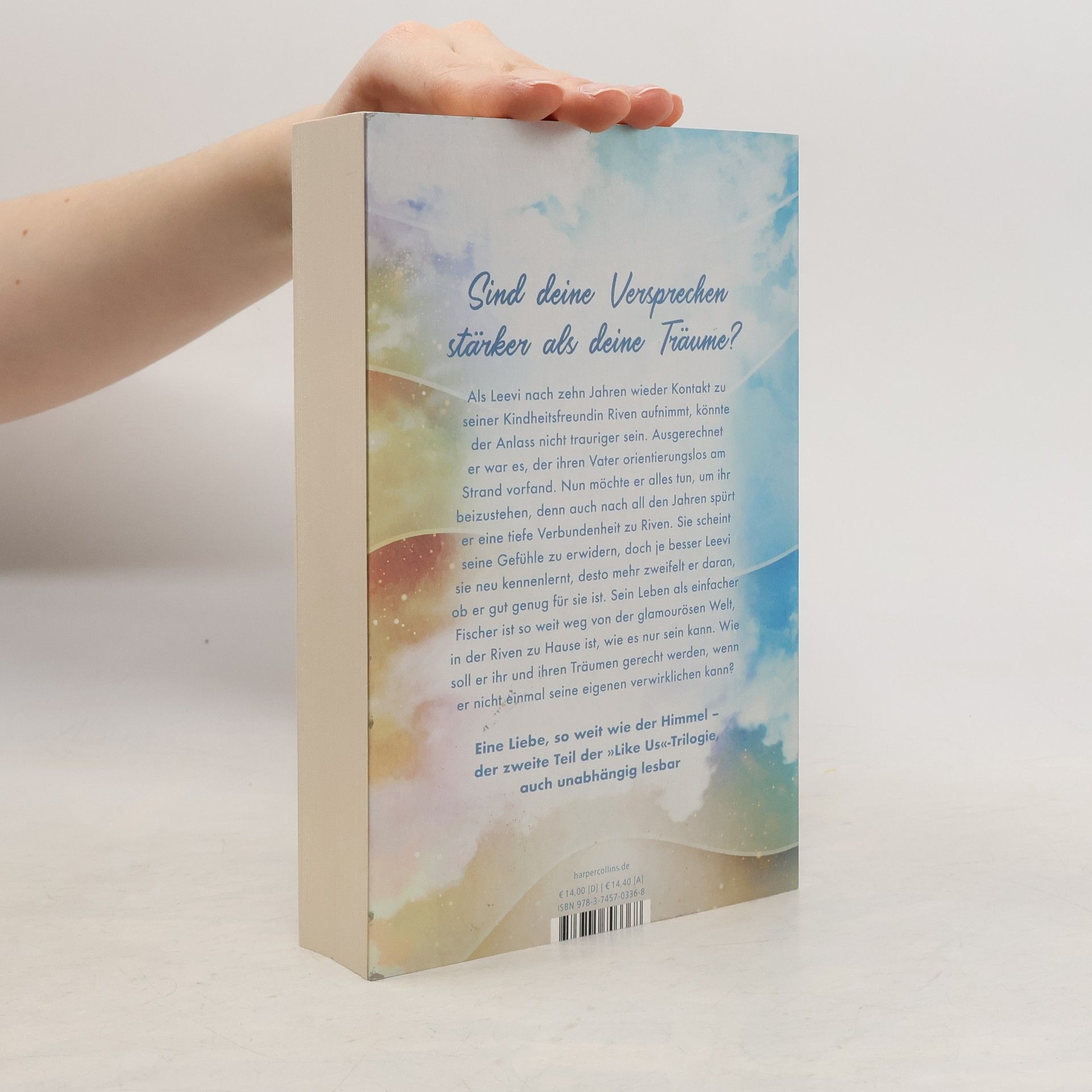 Sind deine Versprechen stärker als deine Träume? Als Leevi nach zehn Jahren wieder Kontakt zu seiner Kindheitsfreundin Riven aufnimmt, könnte der Anlass nicht trauriger sein. Ausgerechnet er war es, der ihren Vater orientierungslos am Strand vorfand. Nun möchte er alles tun, um ihr beizustehen, denn auch nach all den Jahren spürt er eine tiefe Verbundenheit zu Riven. Sie scheint seine Gefühle zu erwidern, doch je besser Leevi sie neu kennenlernt, desto mehr zweifelt er daran, ob er gut genug für sie ist. Sein Leben als einfacher Fischer ist so weit weg von der glamourösen Welt, in der Riven zu Hause ist, wie es nur sein kann. Wie soll er ihr und ihren Träumen gerecht werden, wenn er nicht einmal seine eigenen verwirklichen kann? Eine Liebe, so weit wie der Himmel – der zweite Teil der »Like Us«-Trilogie »Ich bin verliebt in die atmosphärische Stimmung und die authentischen Charaktere. Eine Reihe, die man unbedingt lesen muss!« SPIEGEL- Bestsellerautorin Antonia Wesseling »Von Mut, Liebe und Träumen, die selbst die stärksten Stürme überstehen. Die Like Us- Reihe nimmt das Leser*innenherz von der ersten bis zur letzten Seite im malerischen Kanada gefangen. Eine Empfehlung für alle, die sich nach Ruhe und Hoffnung sehnen.« Justine Pust