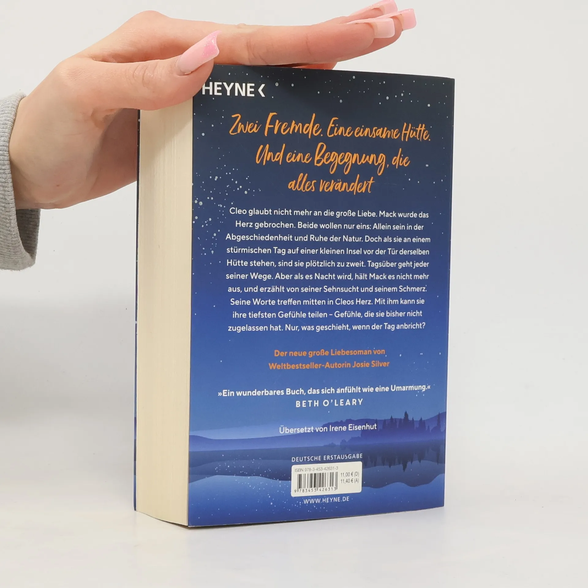 Zwei Fremde. Eine einsame Hütte. Und eine Begegnung, die alles verändert Cleo glaubt nicht mehr an die große Liebe. Mack wurde das Herz gebrochen. Beide wollen nur eins: Allein sein in der Abgeschiedenheit und Ruhe der Natur. Doch als sie an einem stürmischen Tag auf einer kleinen Insel vor der Tür derselben Hütte stehen, sind sie plötzlich zu zweit. Tagsüber geht jeder seiner Wege. Aber als es Nacht wird, hält Mack es nicht mehr aus, und erzählt von seiner Sehnsucht und seinem Schmerz. Seine Worte treffen mitten in Cleos Herz. Mit ihm kann sie ihre tiefsten Gefühle teilen – Gefühle, die sie bisher nicht zugelassen hat. Nur, was geschieht, wenn der Tag anbricht?