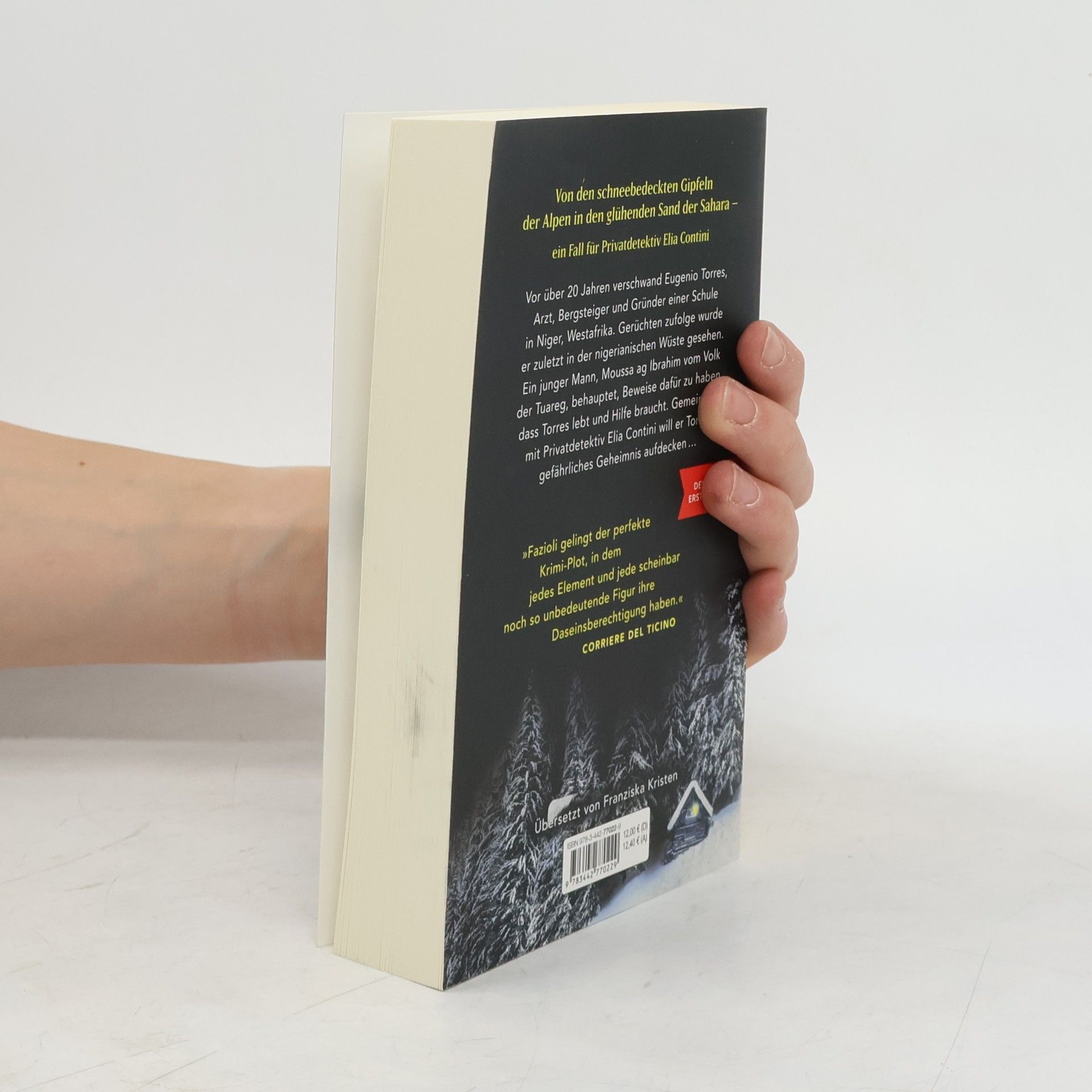 Ein neuer Fall für Privatdetektiv Elia Contini. Ein Krimi aus dem Tessin – für alle LeserInnen von Håkan Nesser Vor über 20 Jahren verschwand Eugenio Torres, ein bekannter Arzt, Bergsteiger und Gründer einer Schule in Niger, Westafrika. Jetzt, nach dem Tod seiner Frau, bitten die Kinder Privatdetektiv Elia Contini um Hilfe. Er soll herausfinden, was mit ihrem Vater damals passiert ist. Gerüchten zufolge wurde er zuletzt in der nigerianischen Wüste gesehen. Von dort kommt eines Tages ein junger Migrant in die Schweiz. Moussa ag Ibrahim gehört dem Volk der Tuareg an und behauptet, Beweise dafür zu haben, dass Torres lebt und Hilfe braucht. Der Detektiv und der junge Mann wollen Torres' gefährliches Geheimnis aufdecken. Zwei radikal gegensätzliche Kulturen treffen im beschaulichen Tessin aufeinander. Oder gibt es vielleicht doch Gemeinsamkeiten zwischen den schneebedeckten Gipfeln der Alpen und den unendlichen Weiten der Sahara?