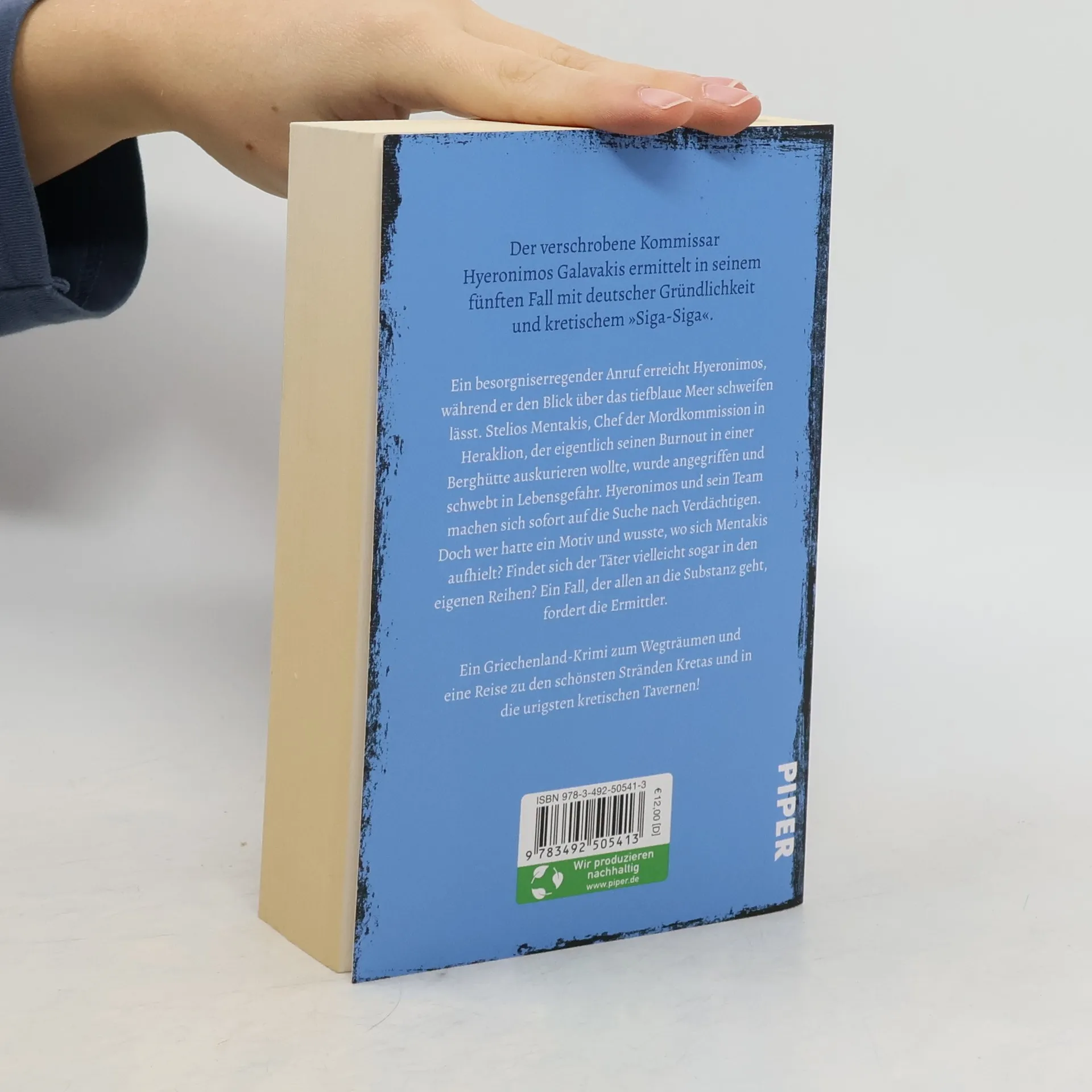 Der verschrobene Kommissar Hyeronimos Galavakis ermittelt in seinem fünften Fall mit deutscher Gründlichkeit und kretischem »Siga-Siga«. Ein Griechenland-Krimi zum Wegträumen und eine Reise zu den schönsten Stränden und in die urigsten Tavernen Kretas Ein besorgniserregender Anruf erreicht Hyeronimos, während er den Blick über das tiefblaue Meer schweifen lässt. Stelios Mentakis, Chef der Mordkommission in Heraklion, der eigentlich seinen Burnout in einer Berghütte auskurieren wollte, wurde angegriffen und schwebt in Lebensgefahr. Hyeronimos und sein Team machen sich sofort auf die Suche nach Verdächtigen. Doch wer hatte ein Motiv und wusste, wo sich Mentakis aufhielt? Findet sich der Täter vielleicht sogar in den eigenen Reihen? Ein Fall, der allen an die Substanz geht, fordert die Ermittler.