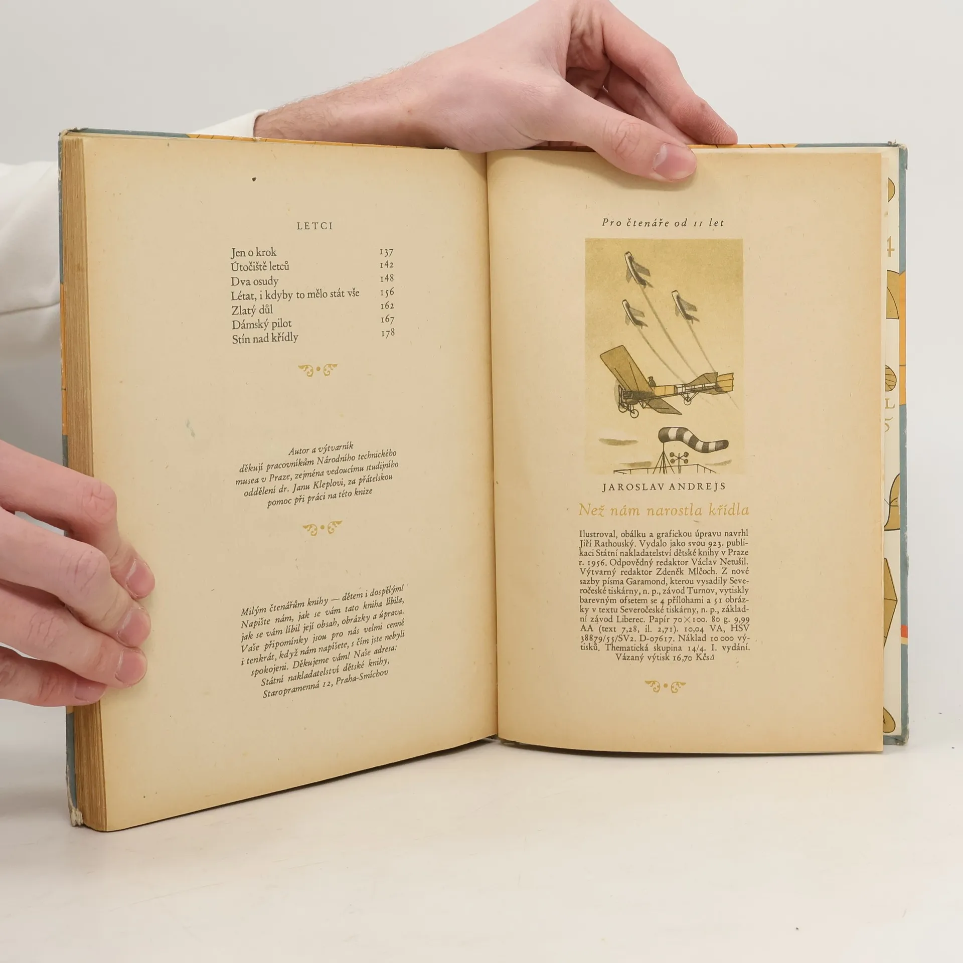 Zábavnou a zajímavou formou seznamuje autor dětského čtenáře s dějinami českého letectví od prvopočátečních pokusů legendárních letců až po opravdové statečné hrdiny našeho letectví. (Vít Fučík, Kadeřábek, Vaněk, Štěpánek, Homola, Hirsch, Málek, Finger, Kašpar, Šimůnek, Čihák, Laglerová, Beneš, Holeka a j.) Děti se poučí o celém světovém vývoji letectví (Cayley, Pènaud, Lilienthal, Mozajskij, Blanchard, Langley, bratří Wrightové, Blériot, Etrich, Pégoud a j.) a o tom, jak důležitě místo mají v dějinách naši průkopníci v tomto oboru i když k těžkostem, k bojům s přírodou a technikou, přistupovalo ještě nepochopení tehdejšího společenského zřízení.