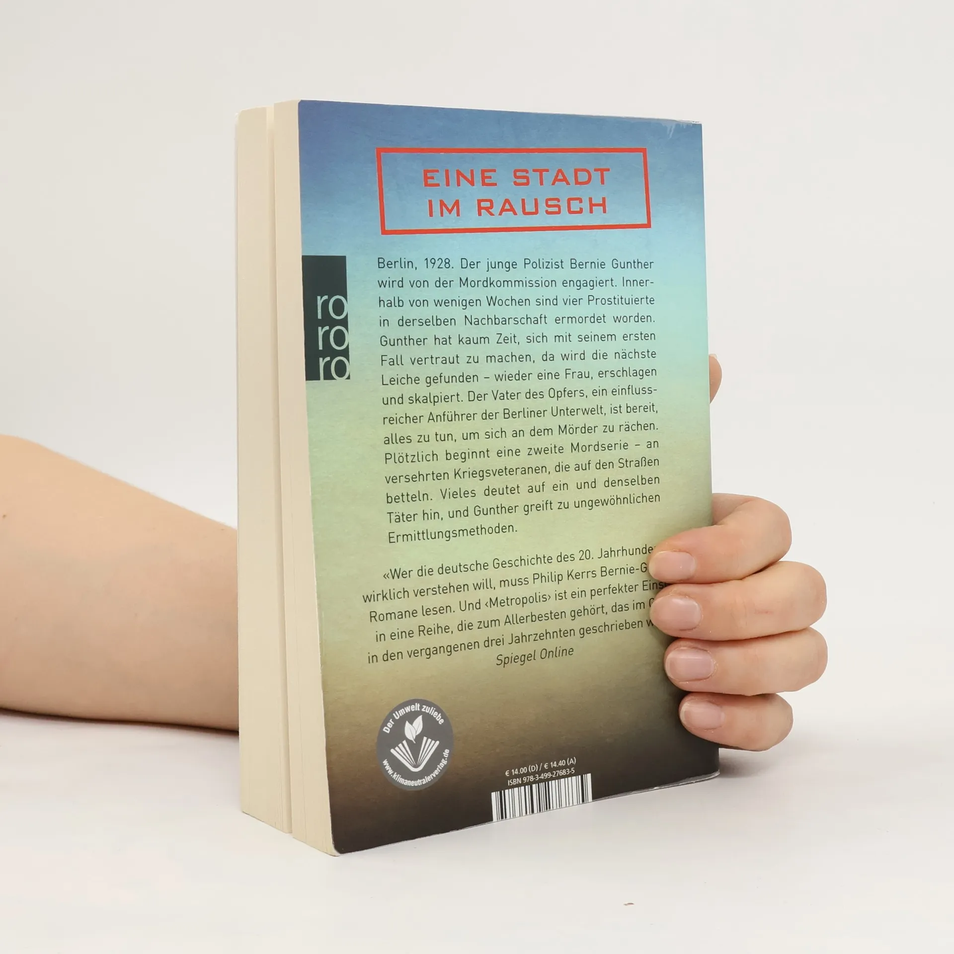 Eine Stadt im Rausch zwischen Dunkelheit und Dekadenz. Das Prequel und der 14. Fall der Bernie-Gunther-Serie von Bestsellerautor Philipp Kerr. Berlin, 1928. Der junge Polizist Bernie Gunther wird von der Mordkommission engagiert. Innerhalb von vier Wochen sind vier Prostituierte in derselben Nachbarschaft massakriert worden. Gunther hat kaum Zeit, sich mit seinem ersten Fall vertraut zu machen, da wird die nächste Leiche gefunden – wieder eine Frau, erschlagen und skalpiert. Während diese Morde die Bevölkerung eher gleichgültig lassen, ist der Vater des letzten Opfers, ein sehr einflussreicher Anführer der Berliner Unterwelt, bereit, alles zu tun, um sich an dem Mörder zu rächen. Dann beginnt eine zweite Mordserie – an versehrten Kriegsveteranen, die auf den Straßen betteln. Vieles deutet auf ein und denselben Täter hin.