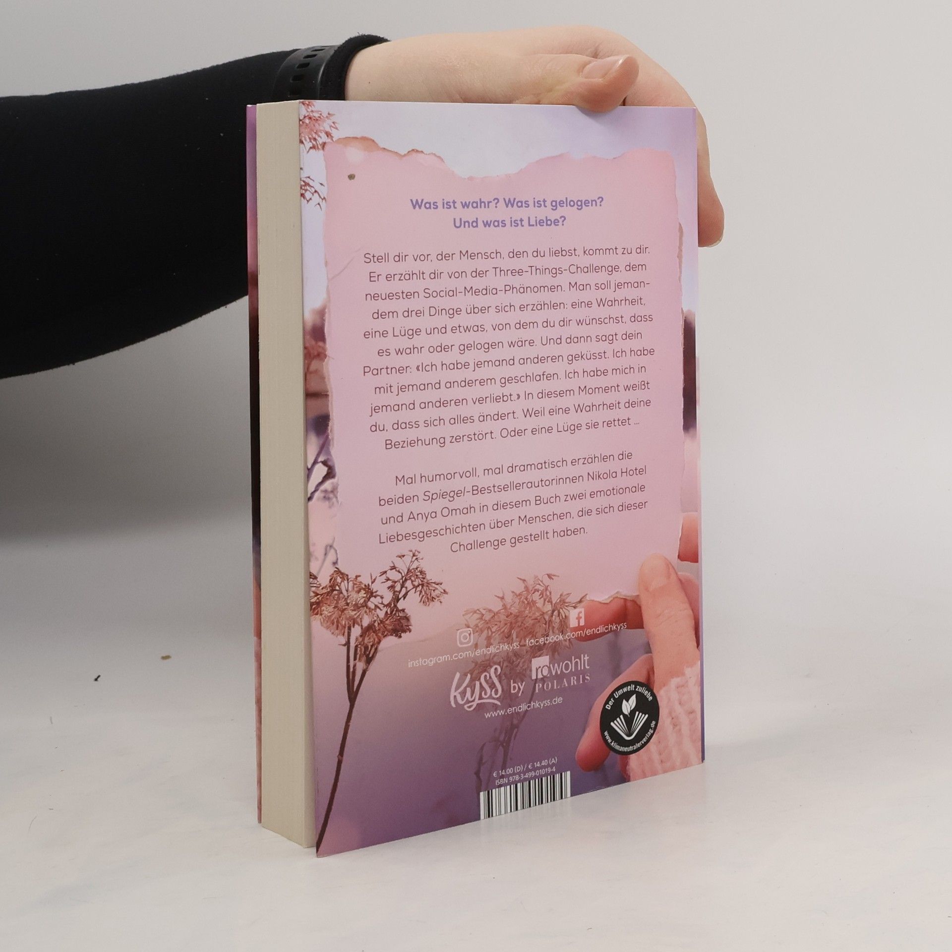 Was ist wahr, was ist gelogen, und was ist Liebe? Stell dir vor, der Mensch, den du liebst, erzählt dir von der Three-Things-Challenge, einem Social-Media-Phänomen, bei dem man jemandem drei Dinge über sich verrät: eine Wahrheit, eine Lüge und etwas, das man sich wünscht, dass es wahr oder gelogen wäre. Plötzlich offenbart dein Partner: „Ich habe jemand anderen geküsst. Ich habe mit jemand anderem geschlafen. Ich habe mich in jemand anderen verliebt.“ In diesem Moment weißt du, dass sich alles ändert. Eine Wahrheit könnte eure Beziehung zerstören, während eine Lüge sie retten könnte. In der Reihe erzählen vier Bestsellerautorinnen Geschichten über Menschen, die sich dieser Challenge stellen. In einem der Kurzromane von Anya Omah wird Aminata, die seit Jahren Bücher selbst veröffentlicht, von zwei Verlagsangeboten überrascht, die durch ein virales Video über ihre neueste Geschichte entstanden sind. Doch als sie erfährt, dass sie ohne Erlaubnis Bilder von Alex verwendet hat, droht ihr Traum zu zerplatzen. Nikola Hotels Geschichte handelt von Harper, die ein Jahr von ihrem Freund Sam getrennt war, während er in Paris studierte. Als er zurückkommt, ist alles seltsam und angespannt. Ein Spiel über Wahrheiten und Lügen könnte die Situation verändern. Die Geschichten sind unabhängig voneinander lesbar und bieten spannende Einblicke in Beziehungen und die Herausforderungen von Wahrheiten und Lügen.