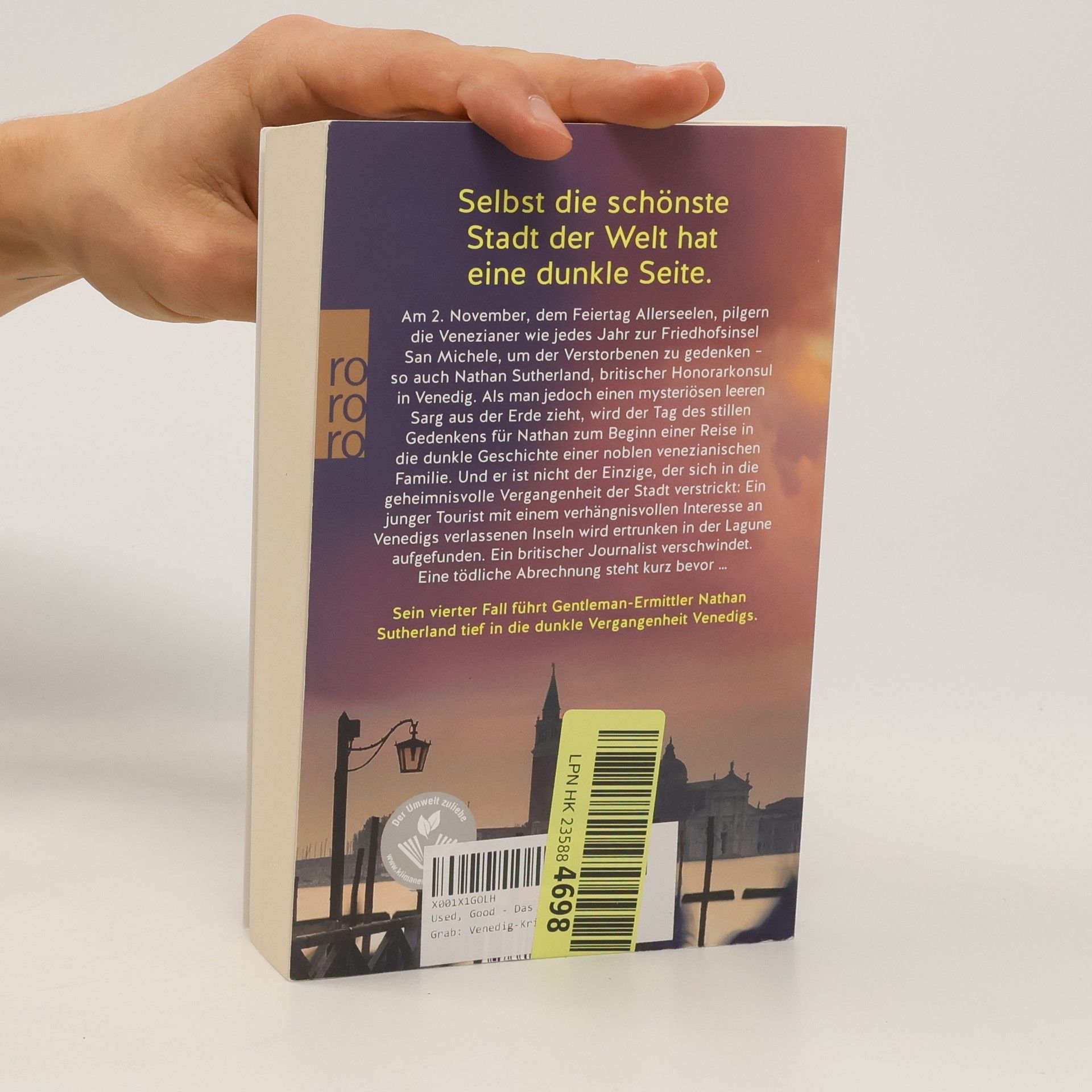 Gänsehaut garantiert: Diesmal führt der neue Fall für Nathan Sutherland ihn tief in die dunkle Vergangenheit Venedigs. Ein Muss für alle Fans von La Serenissima ! Selbst die schönste Stadt der Welt hat eine dunkle Seite ... Am 2. November, dem Feiertag Allerseelen, pilgern die Venezianer wie jedes Jahr zur Friedhofsinsel San Michele, um der Verstorbenen zu gedenken – so auch Nathan Sutherland. Als man jedoch einen mysteriösen leeren Sarg aus der Erde zieht, wird der Tag des stillen Gedenkens für Nathan zum Beginn einer Reise in die dunkle Geschichte einer noblen venezianischen Familie. Und er ist nicht der Einzige, der sich in die geheimnisvolle Vergangenheit der Stadt verstrickt: Ein junger Tourist mit einem verhängnisvollen Interesse an Venedigs verlassenen Inseln wird ertrunken in einer Lagune aufgefunden. Ein britischer Journalist verschwindet. Eine tödliche Abrechnung steht kurz bevor …