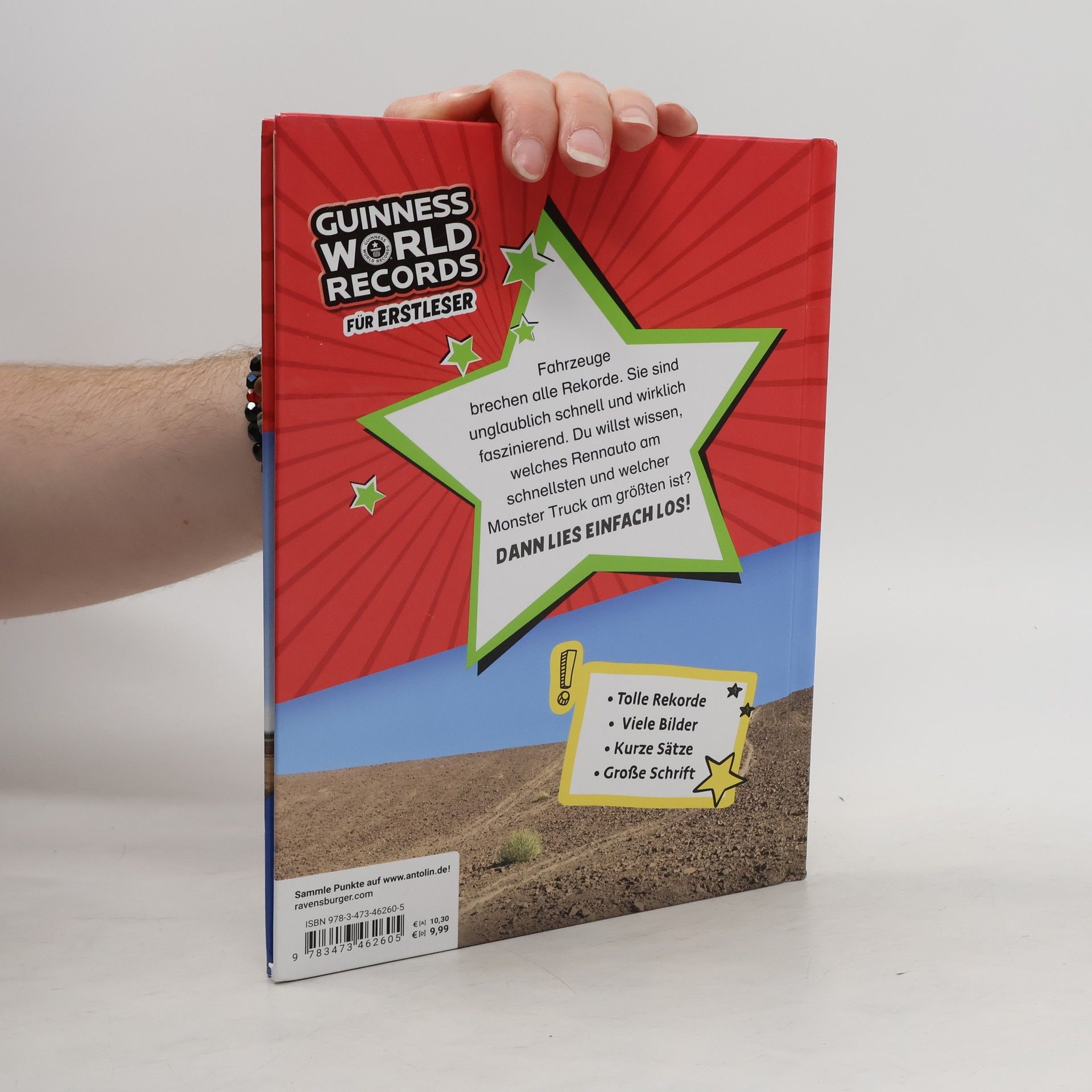 Auf die Sätze, fertig, los! Fahrzeuge brechen immer wieder alle Rekorde. Welcher Traktor fährt am schnellsten? Welches Auto ist das teuerste und welcher Monster Truck der größte? All diese faszinierenden Rekorde können Kinder ab 7 Jahren jetzt auch schon selbst lesen. Kurze Sätze, einfache Sprache, große Schrift und viele Bilder machen es möglich. Guinness World Records gibt es jetzt auch für Erstleser - eine Kinderbuch-Reihe um die erstaunlichsten Weltrekorde aus dem Tierreich, dem Weltraum, der Sportwelt, von Fahrzeugen oder Dinosauriern.