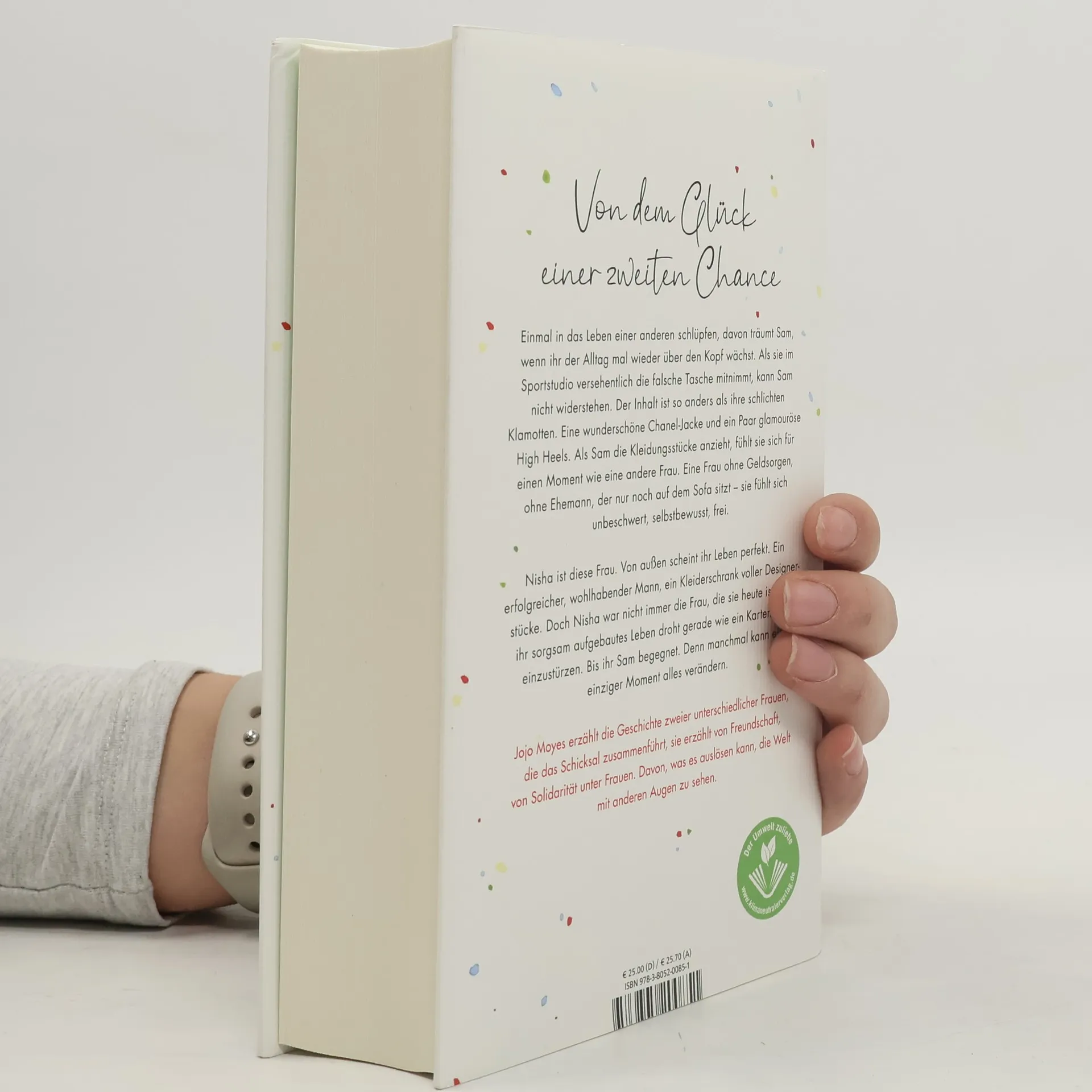 Mit «Ein ganzes halbes Jahr» hat Jojo Moyes Millionen Leser: innen-Herzen erobert. Ihre Romane sind unvergleichlich, lassen uns mitfühlen, bringen uns zum Weinen und zum Lachen. In ihrem neuen Roman erzählt Jojo Moyes die Geschichte zweier ungleicher Frauen, die das Schicksal zusammenführt.  Einmal in das Leben einer anderen schlüpfen, davon träumt Sam, wenn ihr der Alltag mal wieder über den Kopf wächst. Als sie im Sportstudio versehentlich die falsche Tasche mitnimmt, kann sie nicht widerstehen. Der Inhalt ist so anders als ihre schlichten Klamotten. Eine wunderschöne Chanel-Jacke und ein Paar glamouröse High Heels. Als Sam die Kleidungsstücke anzieht, fühlt sie sich für einen Moment wie eine andere Frau. Eine Frau ohne Geldsorgen, ohne Ehemann, der nur noch auf dem Sofa sitzt - sie fühlt sich unbeschwert, selbstbewusst, frei.  Nisha ist diese Frau. Von außen scheint ihr Leben perfekt. Ein erfolgreicher, wohlhabender Mann, ein Kleiderschrank voller Designerstücke. Doch Nisha war nicht immer die Frau, die sie heute ist. Und ihr sorgsam aufgebautes Leben droht gerade wie ein Kartenhaus einzustürzen. Bis ihr Sam begegnet. Denn manchmal kann ein einziger Moment alles verändern.  Jojo Moyes erzählt die Geschichte von Sam und Nisha, sie erzählt von Freundschaft, von Solidarität unter Frauen. Davon, was es auslösen kann, die Welt mit anderen Augen zu sehen. Und von dem Glück einer zweiten Chance.
