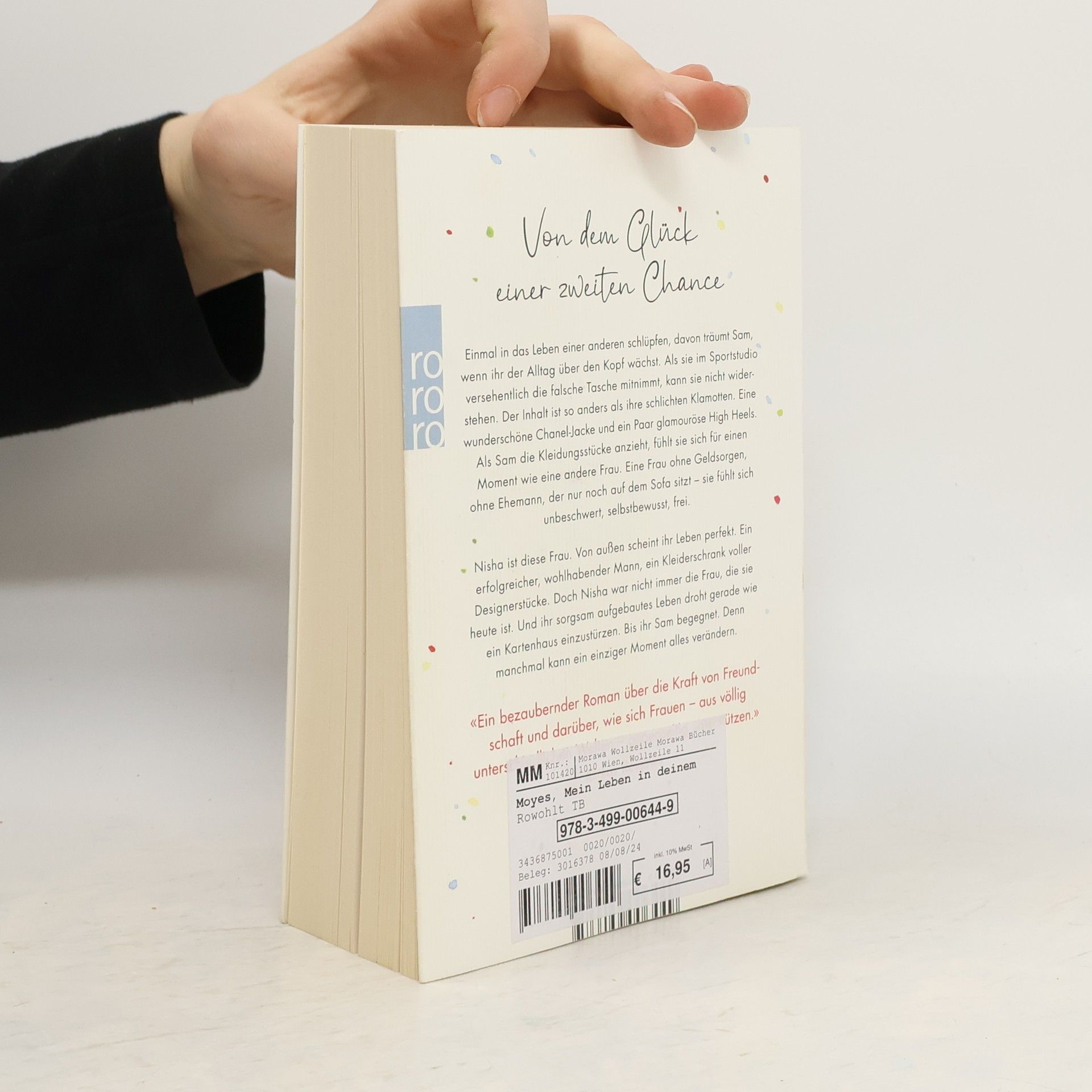 Endlich! Der neue Roman von Jojo Moyes erscheint am 2. Februar 2023. Mit «Ein ganzes halbes Jahr» hat Jojo Moyes Millionen erobert. Ihre Romane sind unvergleichlich, lassen uns mitfühlen, bringen uns zum Weinen und zum Lachen. In ihrem neuen Roman erzählt Jojo Moyes die Geschichte zweier ungleicher Frauen, die das Schicksal zusammenführt. Einmal in das Leben einer anderen schlüpfen, davon träumt Sam manchmal, wenn ihr der Alltag über den Kopf wächst. Als Sam in ihrem Sportstudio versehentlich die falsche Tasche mitnimmt, kann sie nicht widerstehen. Der Inhalt ist so anders als ihre schlichten, vernünftigen Klamotten. Eine wunderschöne Chanel-Jacke und ein Paar glamouröse High Heels. Als Sam die Kleidungsstücke anzieht, fühlt sie sich für einen Moment wie eine andere Frau. Sorglos, unbeschwert, frei. Ein Gefühl, das sie lange nicht mehr hatte … Nisha ist diese Frau. Von außen scheint ihr Leben perfekt. Ein gut aussehender, reicher Ehemann, ein Kleiderschrank voller Designerstücke. Doch Nisha war nicht immer die Frau, die sie heute ist. Und sie hat furchtbare Angst, alles wieder zu verlieren. Die Begegnung mit Sam hätte zu keinem schlechteren Zeitpunkt passieren können … Jojo Moyes erzählt die Geschichte von Sam und Nisha, sie erzählt von Freundschaft, von Liebe. Davon, was es auslösen kann, einmal die Perspektive zu wechseln, die Welt mit anderen Augen zu sehen. Und von dem Glück einer zweiten Chance.