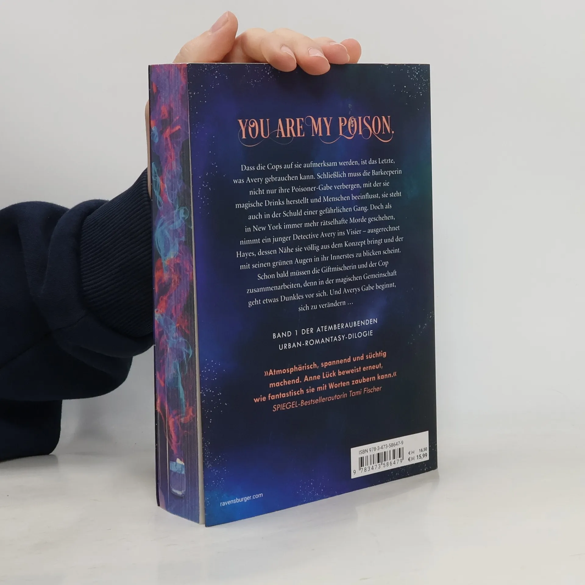 You are my poison. Dass die Cops auf sie aufmerksam werden, ist das Letzte, was Avery gebrauchen kann. Schließlich muss die Barkeeperin nicht nur ihre Poisoner-Gabe verbergen, mit der sie magische Drinks herstellt und Menschen beeinflusst, sie steht auch in der Schuld einer gefährlichen Gang. Doch als in New York immer mehr rätselhafte Morde geschehen, nimmt ein junger Detective Avery ins Visier – ausgerechnet Hayes, dessen Nähe sie völlig aus dem Konzept bringt und der mit seinen grünen Augen in ihr Innerstes zu blicken scheint. Schon bald müssen die Giftmischerin und der Cop zusammenarbeiten, denn in der magischen Gemeinschaft geht etwas Dunkles vor sich. Und Averys Gabe beginnt, sich zu verändern … Knisternd. Gefährlich. Packend. Band 1 der atemberaubenden SPIEGEL-Bestseller-Dilogie *** Leseprobe *** „Avery.“ Dieses Wort nur. Nur mein Name. Und plötzlich war es, als würde die Umgebung um mich herum wieder leiser werden. Ruhiger. Schärfer. Ich blickte auf, in dem Moment, in dem sich Hayes vor mich hinhockte. Er stützte die Ellenbogen auf den Knien ab, die Hände ineinander verschränkt, und sah mich mit einem ernsten Blick an, der tausend Worte sagte und doch kein einziges. Mein Blick zuckte zu seiner Brust, wo links das Logo des NYPD prangte. Er war im Dienst. Um Himmels willen, natürlich war er das. Er war zu einem Verbrechen gerufen worden. Und ich, eine Magierin, war seine Hauptverdächtige.
