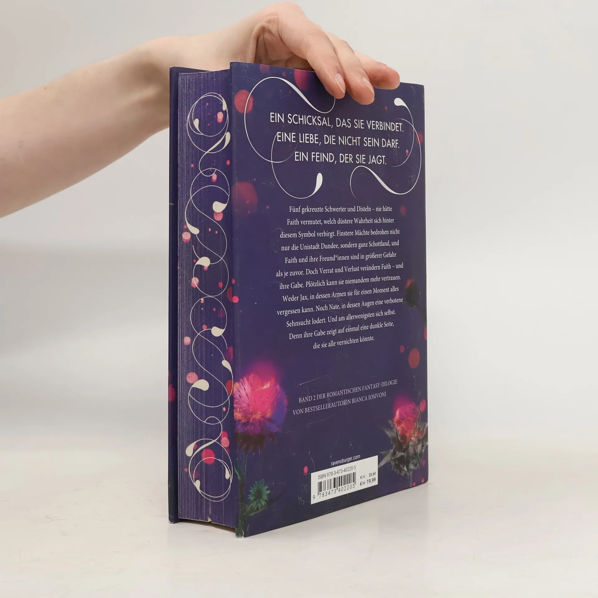 Fünf gekreuzte Schwerter und Disteln – nie hätte Faith vermutet, welch düstere Wahrheit sich hinter diesem Symbol verbirgt. Finstere Mächte bedrohen ganz Schottland, und Faith und ihre Freund*innen sind in größerer Gefahr als je zuvor. Doch Verrat und Verlust verändern Faith. Plötzlich kann sie niemandem mehr vertrauen. Weder Jax, in dessen Armen sie alles vergessen kann. Noch Nate, in dessen Augen Sehnsucht lodert. Und am wenigsten sich selbst. Denn ihre Gabe zeigt auf einmal eine dunkle Seite. Weitere actiongeladene und herzzerreißende Romantasy von Bianca Iosivoni: Sturmtochter, Bd. 1-3 Soul Mates, Bd. 1 & 2 The Last Goddess, Bd. 1 & 2