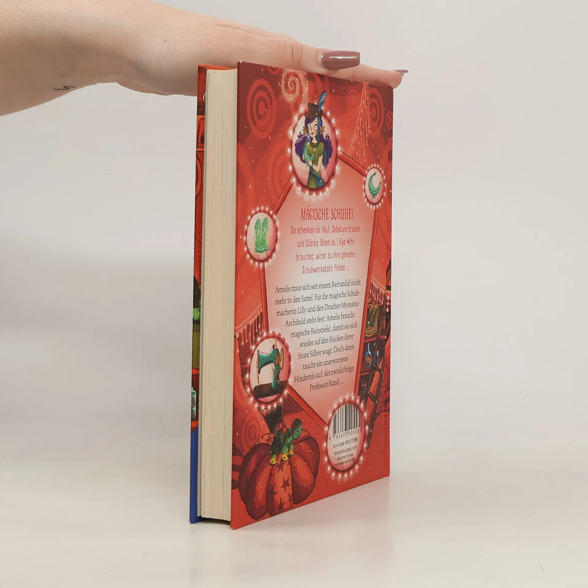 Diese magischen Schuhe schenken dir Mut, Selbstvertrauen und Stärke. Wenn du Lillys Hilfe brauchst, wirst du ihre geheime Schuhwerkstatt finden … Amelie sitzt seit einem Reitunfall im Rollstuhl, und dennoch wünscht sie sich nichts sehnlicher, als wieder auf ihrer geliebten Stute Silber zu reiten. Auf ihrem Rücken konnte sie alles schaffen, jede Hürde überwinden. Wie gern würde sie nun mit Silbers Hilfe ein Stück Freiheit zurückgewinnen! Für die magische Schuhmacherin Lilly ist klar: Amelie braucht magische Reitstiefel, damit sie sich wieder traut zu reiten! Entdecke alle Abenteuer in der magischen Schuhwerkstatt: Band 1: Die geheime Werkstatt Band 2: Die verbotenen Stiefel Band 3: Die zauberhaften Flügel Band 4: Der tanzende Drache Band 5: Der funkelnde Berg Band 6: Die verschwundene Schildkröte Band 7: Das kostbare Pferd Band 8: Die glitzernde Insel Adventskalender: Das Meer der Wünsche