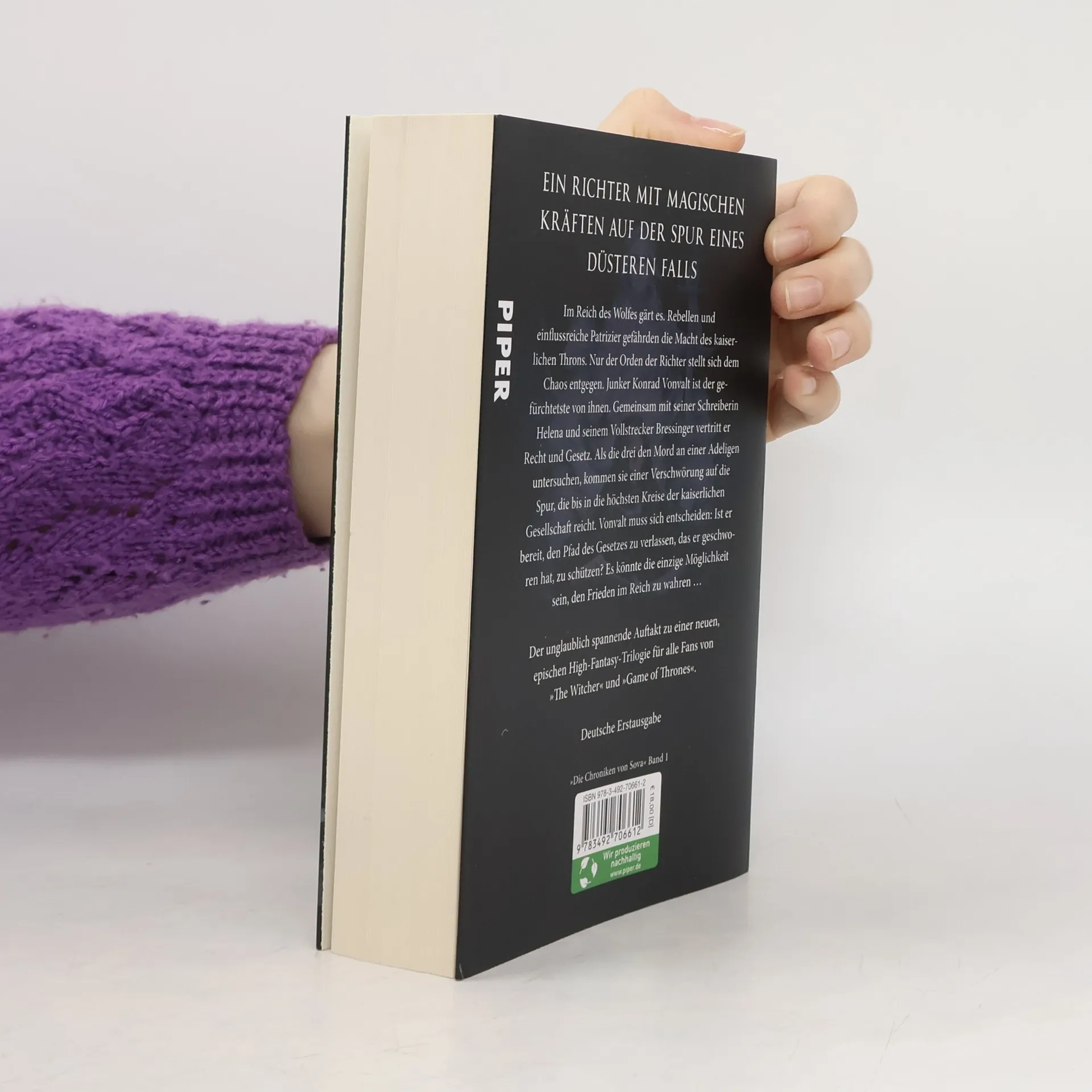Im Reich des Wolfes gärt es. Rebellen und mächtige Patrizier gefährden die Macht des kaiserlichen Throns. Nur der Orden der Richter stellt sich dem Chaos entgegen. Sir Konrad Vonvalt ist der gefürchtetste von ihnen, der gemeinsam mit seiner Schreiberin Helena und seinem Vollstrecker Bressinger Recht und Gesetz vertritt. Als die drei den Mord an einer Adeligen untersuchen, kommen sie einer Verschwörung auf die Spur, die bis in die Spitze der kaiserlichen Gesellschaft reicht. Vonvalt muss sich entscheiden: Wird er die Gesetze missachten, die geschworen hat, zu schützen, um das Reich zu retten?