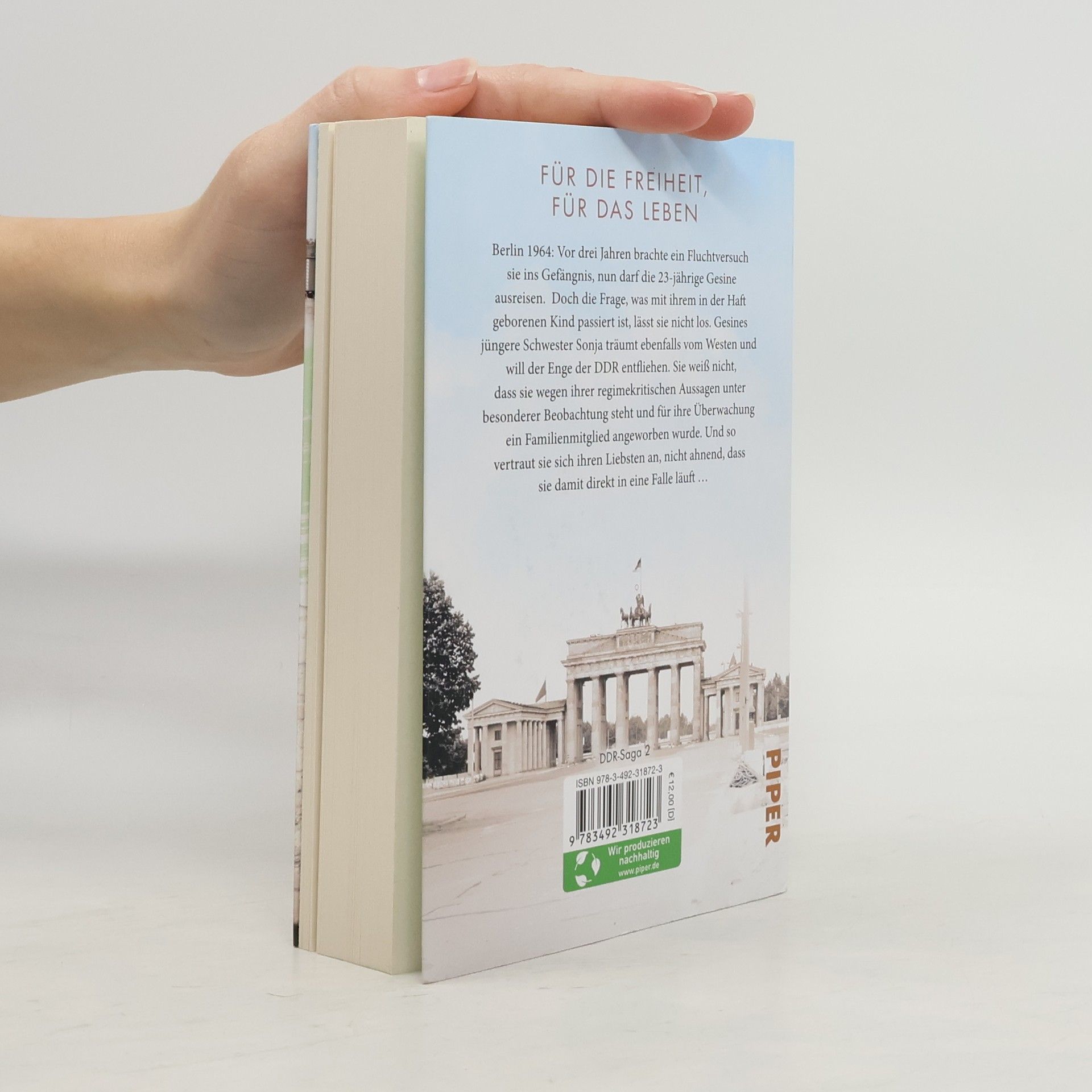 Gespaltenes Land, gespaltene Herzen – eine Familie, zerrissen zwischen Ost und West Berlin 1964: Nach der Haft darf Gesine ausreisen, doch die Frage, was mit ihrem Kind passiert ist, lässt sie nicht los. Gesines Schwester Sonja steht wegen DDR-kritischer Aussagen unter besonderer Beobachtung. Dass für ihre Überwachung ein enges und geliebtes Familienmitglied angeworben wurde, weiß Sonja nicht. Und so vertraut sie sich ihren Liebsten an, nicht ahnend, dass sie in eine Falle laufen könnte. Mutter Lotte bleibt mit ihrer jüngsten Tochter Lydia in Ostberlin. Denn beim Nesthäkchen der Familie zeigt sich ein sportliches Talent, das Lotte von einer besseren Zukunft träumen lässt. Inspiriert von der eigenen Geschichte der Autorin Farina Eden ist selbst im Osten Berlins und damit in der DDR aufgewachsen. Ein Teil ihrer Familie reiste in den Westen aus, weshalb die in der DDR verbliebenen Angehörigen politischem Druck ausgesetzt waren. Diese Erfahrung diente der Autorin als eine Inspiration für die Trilogie, der jedoch keine einzelne Familienbiografie zugrunde liegt. Vielmehr hat sie verschiedenste historisch belegte Ereignisse zusammengetragen und zu einer »exemplarischen Familiengeschichte« verwoben. Farina Edens mitreißende DDR-Saga, für die Leser: innen von Claire Winters »Kinder ihrer Zeit« und Ulrike Schweikerts »Friedrichstraßensaga« sowie für Fans der Serie »Weißensee«.