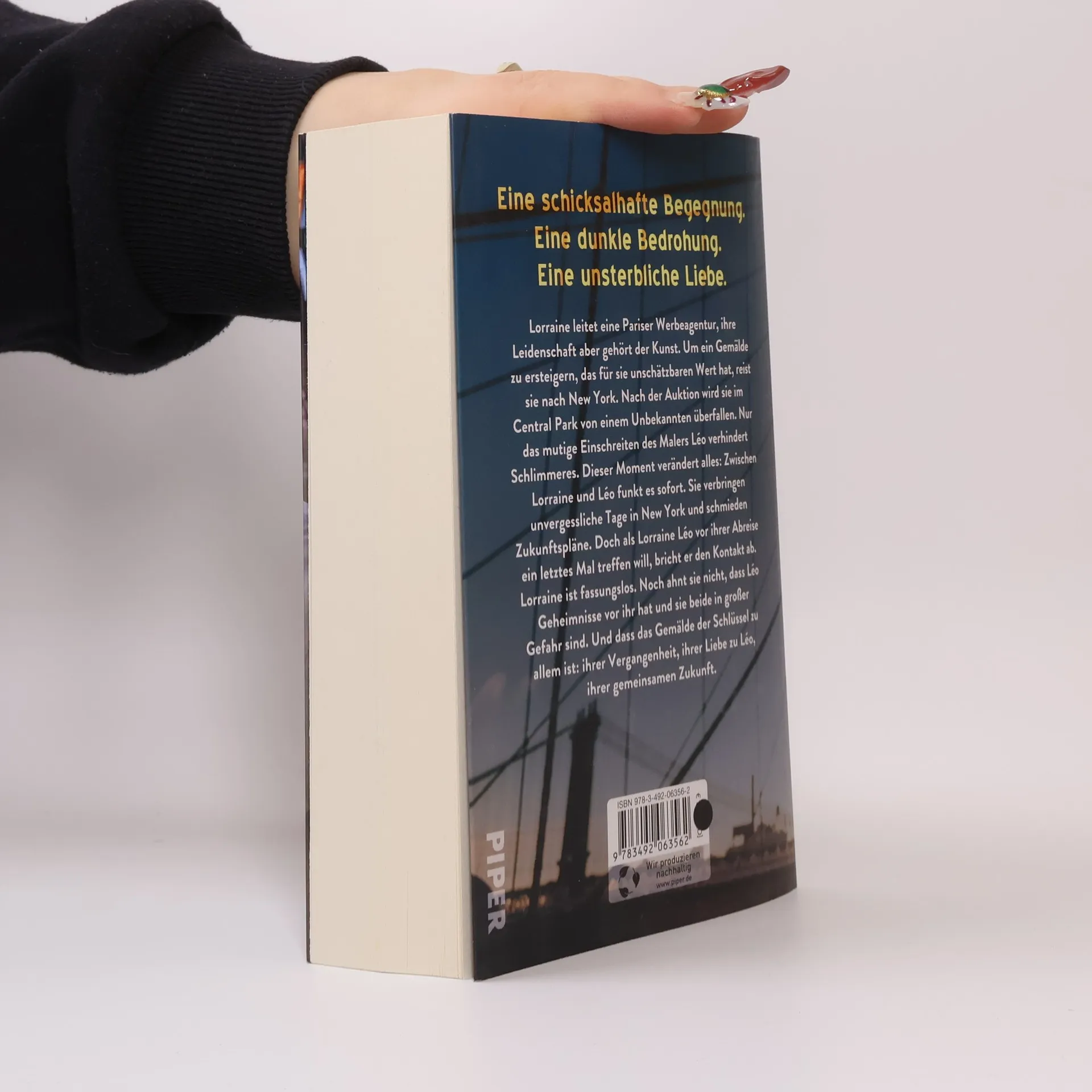 Eine Kunstsammlerin in Paris und ein Kunstfälscher in New York erleben eine schicksalhafte Begegnung und unsterbliche Liebe. Lorraine, die eine renommierte Pariser Werbeagentur leitet, hat eine Leidenschaft für Kunst. Bei der Versteigerung eines berühmten Gemäldes in New York wird sie im Central Park überfallen, doch der Maler Leo rettet sie. Zwischen den beiden entsteht sofort eine Verbindung, doch sie sind in Gefahr: Lorraine wird von einem Stalker verfolgt, der sie mit anonymen Nachrichten bedroht. Leo, der kürzlich aus dem Gefängnis entlassen wurde, kämpft mit seiner Vergangenheit und entdeckt etwas Schreckliches, das ihre Liebe gefährden könnte. Die Geschichte bietet eine einzigartige Liebesgeschichte und spannende Wendungen, ideal für Leser, die Guillaume Mussos Werke schätzen. Der Autor Mark Miller bleibt geheimnisvoll, und die Verlagswelt rätselt über seine Identität. Die Begeisterung für sein Debütroman ist groß: „Spannung, Action und Emotionen machen aus diesem Roman das Buch des Sommers!“ (Gala). Leser sind fasziniert von der Mischung aus Intrigen, Familiengeheimnissen und einer fesselnden Handlung, die mit einem unvorhersehbaren Ende überrascht. Mark Millers Meisterschaft in Sachen Spannung sorgt dafür, dass dieser Roman das Potenzial hat, ein Bestseller zu werden.