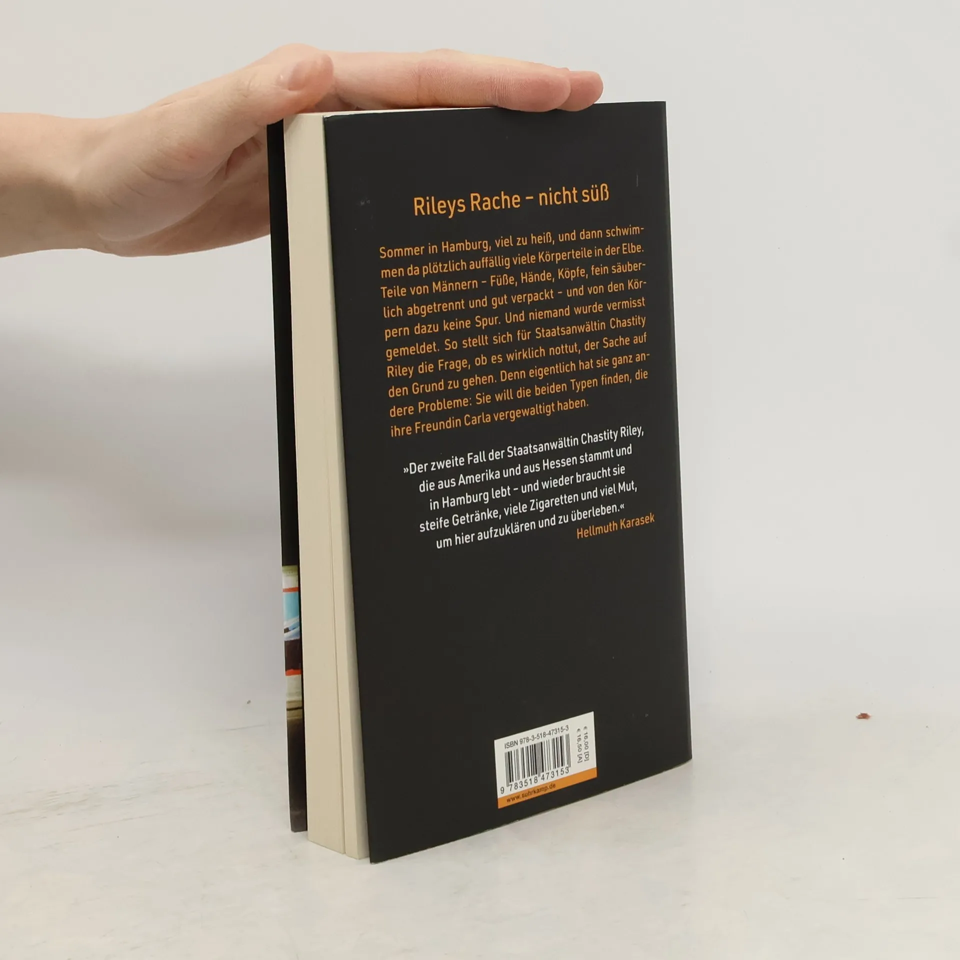 Es ist Sommer in Hamburg, viel zu heiß, doch Sankt Pauli leuchtet warm – da schwimmen plötzlich auffällig viele Füße in der Elbe. Männerfüße, und von den Körpern dazu keine Spur. Nach und nach tauchen weitere Körperteile auf, fein säuberlich abgetrennt und gut verpackt. Kripo-Chef Calabretta macht Urlaub in Italien, und sein frühpensionierter Vorgänger Faller schlägt die Zeit beim Angeln tot. Also muss Staatsanwältin Chastity Riley die »Soko Knochensäge« erst mal alleine wuppen. Da die Männerteile anscheinend von niemandem vermisst werden, stellt sich für Riley allerdings die Frage, ob sie der Welt wirklich einen Gefallen tut, wenn sie die Täter dingfest macht. Außerdem hat sie eigentlich ganz andere Probleme, als sich mit in die Elbe geworfenen Männerteilen zu beschäftigen. Sie will die beiden Typen finden, die ihre Freundin Carla vergewaltigt haben.