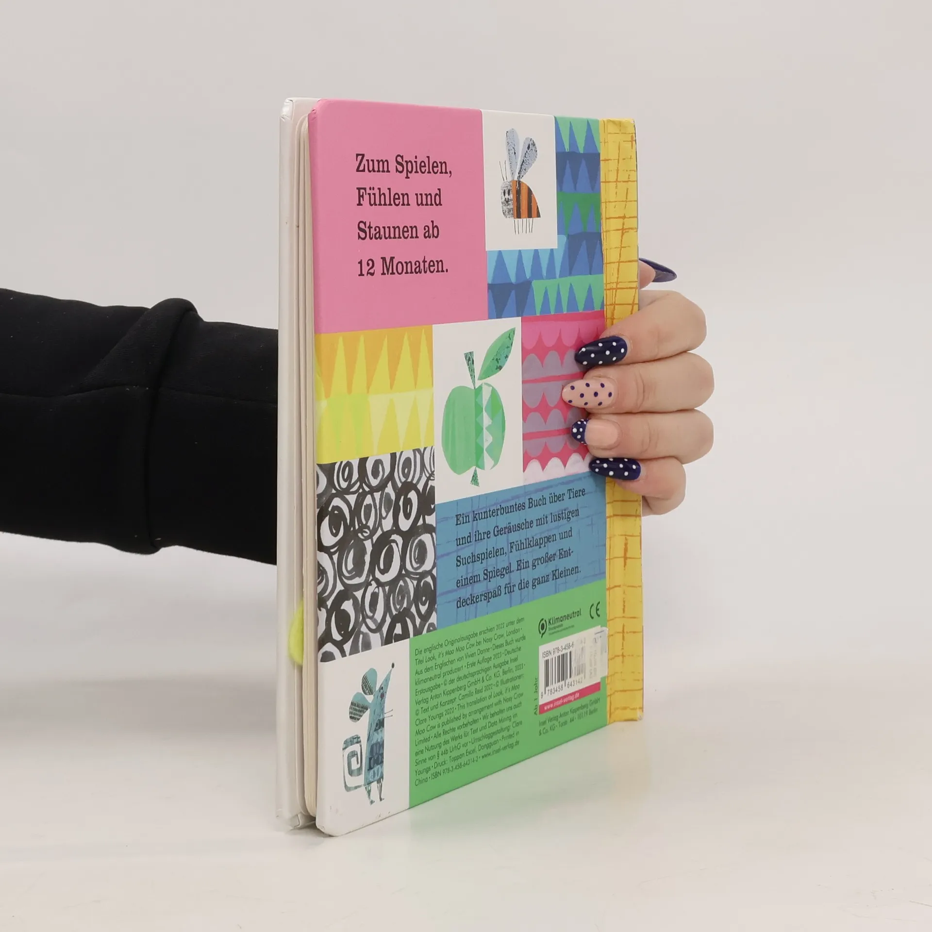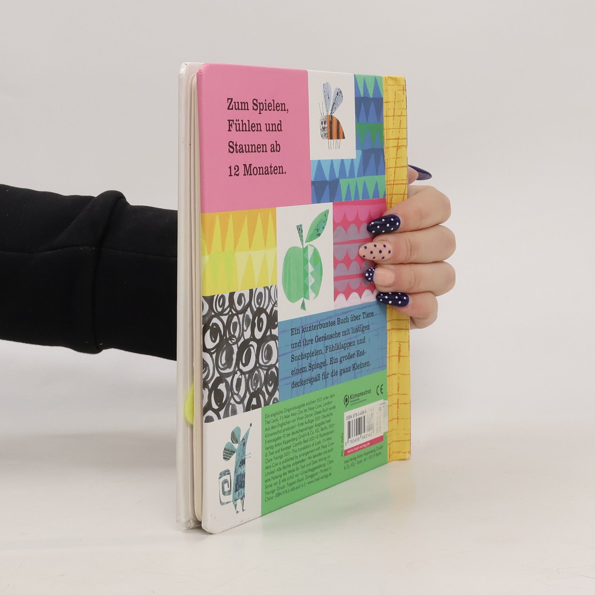 Eine kunterbunte neue Bilderbuchreihe, die zum Entdecken mit allen Sinnen einlädt. Jeder Band stellt vier Tiere und ihre charakteristischen Geräusche vor. Das Schaf macht mäh, der Frosch sagt quak und welche Laute wohl das Zebra oder das Eichhörnchen von sich geben? Zusätzlich begeistern die vielen Extras: Liebevoll gestaltete Collagen mit glitzernden Highlights und lustige Suchspiele – denn hinter jeder Fühlklappe hat sich ein kleines Lebewesen versteckt. Und am Ende gibt es als große Überraschung einen Spiegel: Welches Geräusch machst du?