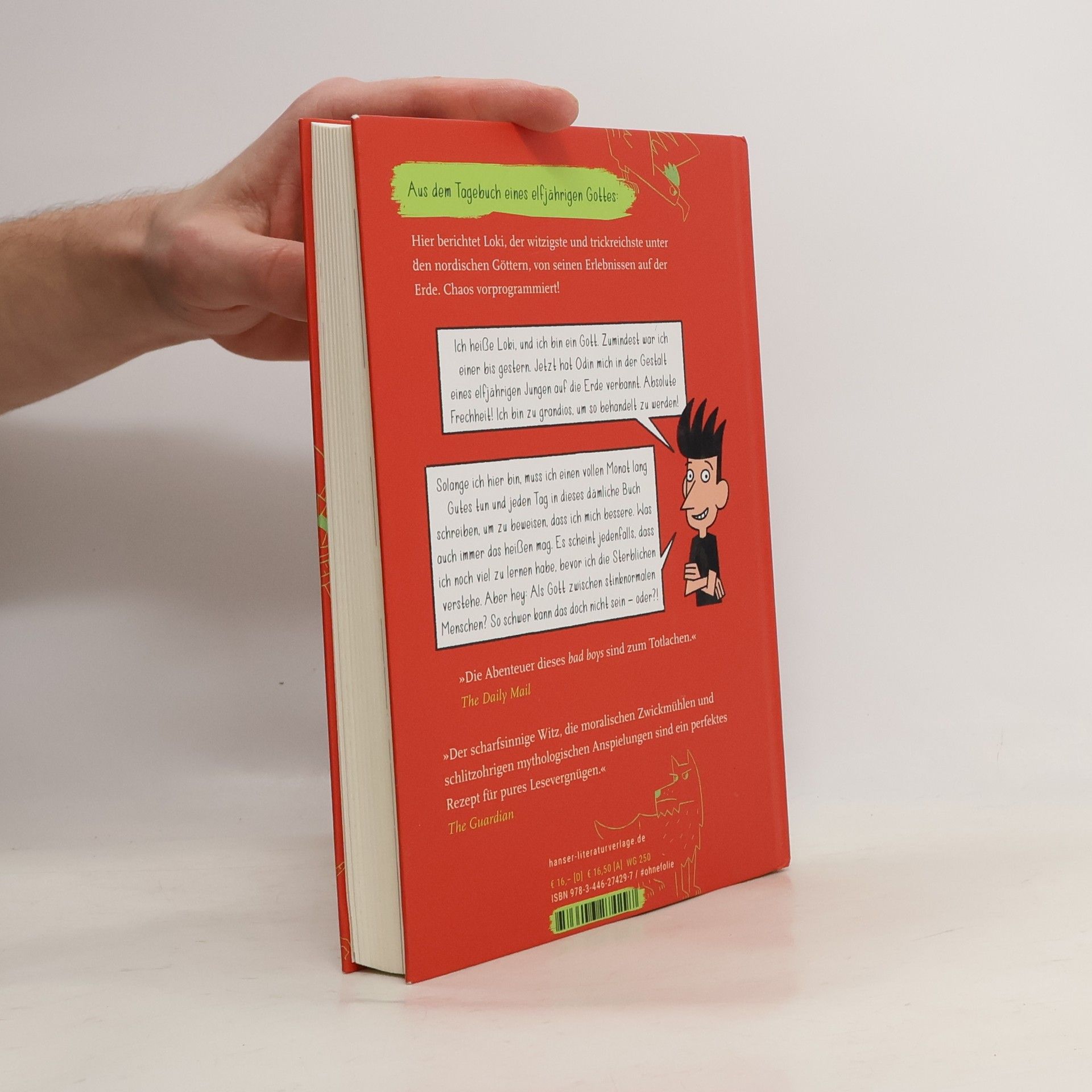 Nordische Mythologie trifft auf irdisches Schulleben: das Tagebuch eines elfjährigen Gottes, mit viel Witz illustriert von Ulf K. Als Gott zwischen stinknormalen Menschen? Nichts leichter als das – oder?! Loki ist der witzigste und trickreichste unter den nordischen Göttern. Findet zumindest er. Dumm nur, dass die anderen Bewohner Asgards seinen Humor nicht teilen und ihn auf die Erde verbannen. Unverschämtheit! Getarnt als Elfjähriger und ohne die Hilfe seiner göttlichen Kräfte, muss Loki beweisen, dass er es verdient, zu den anderen Göttern zurückzukehren. Schnell wird klar: Das Leben unter Sterblichen hat es in sich – mieses Essen, nervige Geschwister, fiese Lehrer, neugierige Mitschüler –, und Loki hat wirklich absolut keine Ahnung, wie man Gut von Böse unterscheidet. Seine Erlebnisse hält er in diesem Tagebuch fest – ironisch, geistreich und urkomisch!