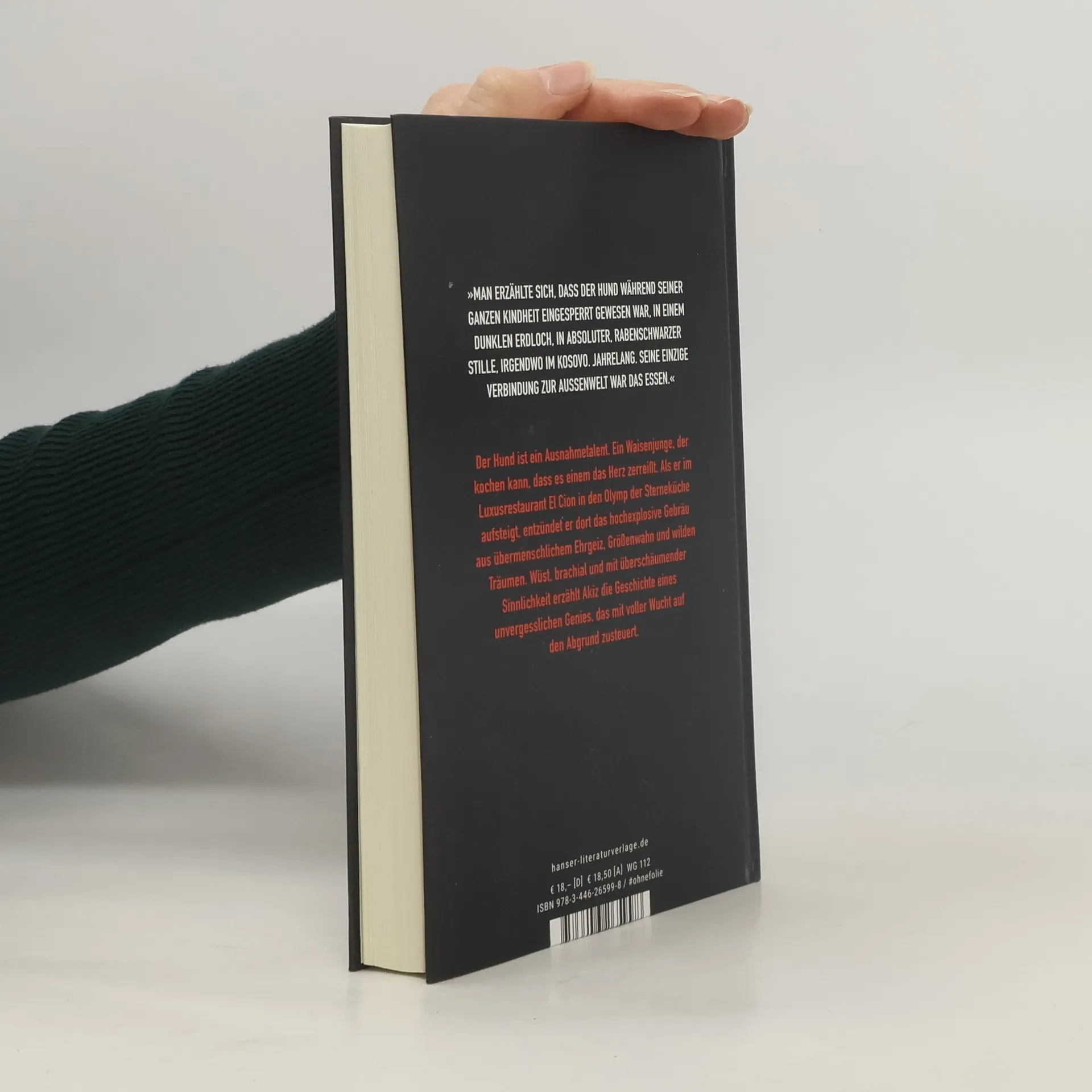 Wüst, brutal, sinnlich: Akiz erzählt die Geschichte eines Underdogs auf dem Weg in die Sterneküche – ein neuer Sound in der deutschen Literatur.Der Hund ist ein Ausnahmetalent. Ein Waisenjunge, halb verhungert aus einem Kellerloch gekrochen, der kochen kann, dass es einem das Herz zerreißt. Und er ist für Mo wie ein Bruder. Als sie beide im Restaurant El Cion anfangen, steigt der Hund in den Olymp der Sterneküche auf. Akiz erzählt die Geschichte zweier Underdogs, ohne Luft zu holen, in überschäumendem Sound. Ein brachiales, unvergessliches Debüt, das mit voller Wucht auf die Explosion zusteuert.