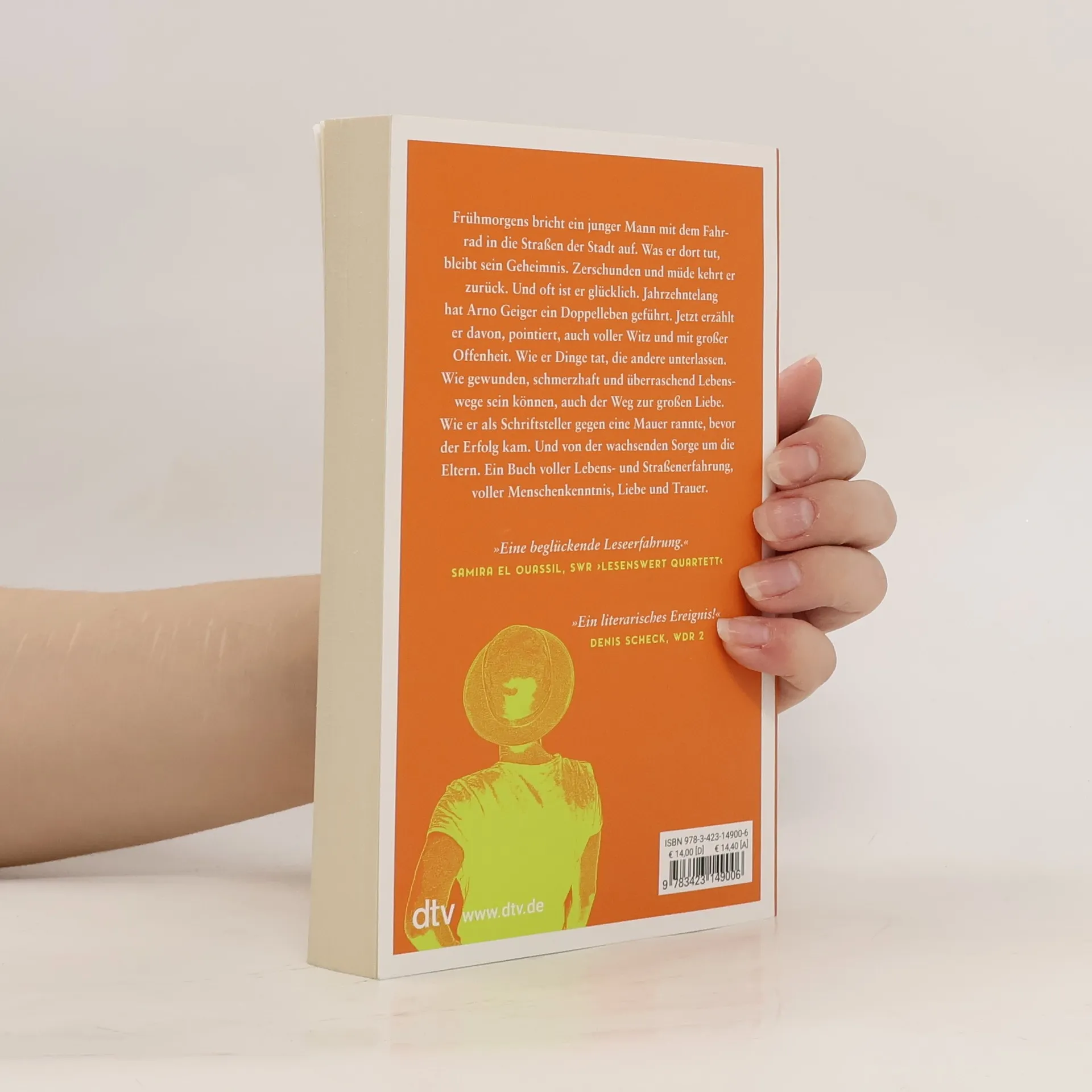 »Ein literarisches Ereignis!« Denis Scheck, WDR 2 Frühmorgens bricht ein junger Mann mit dem Fahrrad in die Straßen der Stadt auf. Was er dort tut, bleibt sein Geheimnis. Zerschunden und müde kehrt er zurück. Und oft ist er glücklich. Jahrzehntelang hat Arno Geiger ein Doppelleben geführt. Jetzt erzählt er davon, pointiert, auch voller Witz und mit großer Offenheit. Wie er Dinge tat, die andere unterlassen. Wie gewunden, schmerzhaft und überraschend Lebenswege sein können, auch der Weg zur großen Liebe. Wie er als Schriftsteller gegen eine Mauer rannte, bevor der Erfolg kam. Und von der wachsenden Sorge um die Eltern. Ein Buch voller Lebens- und Straßenerfahrung, voller Menschenkenntnis, Liebe und Trauer.