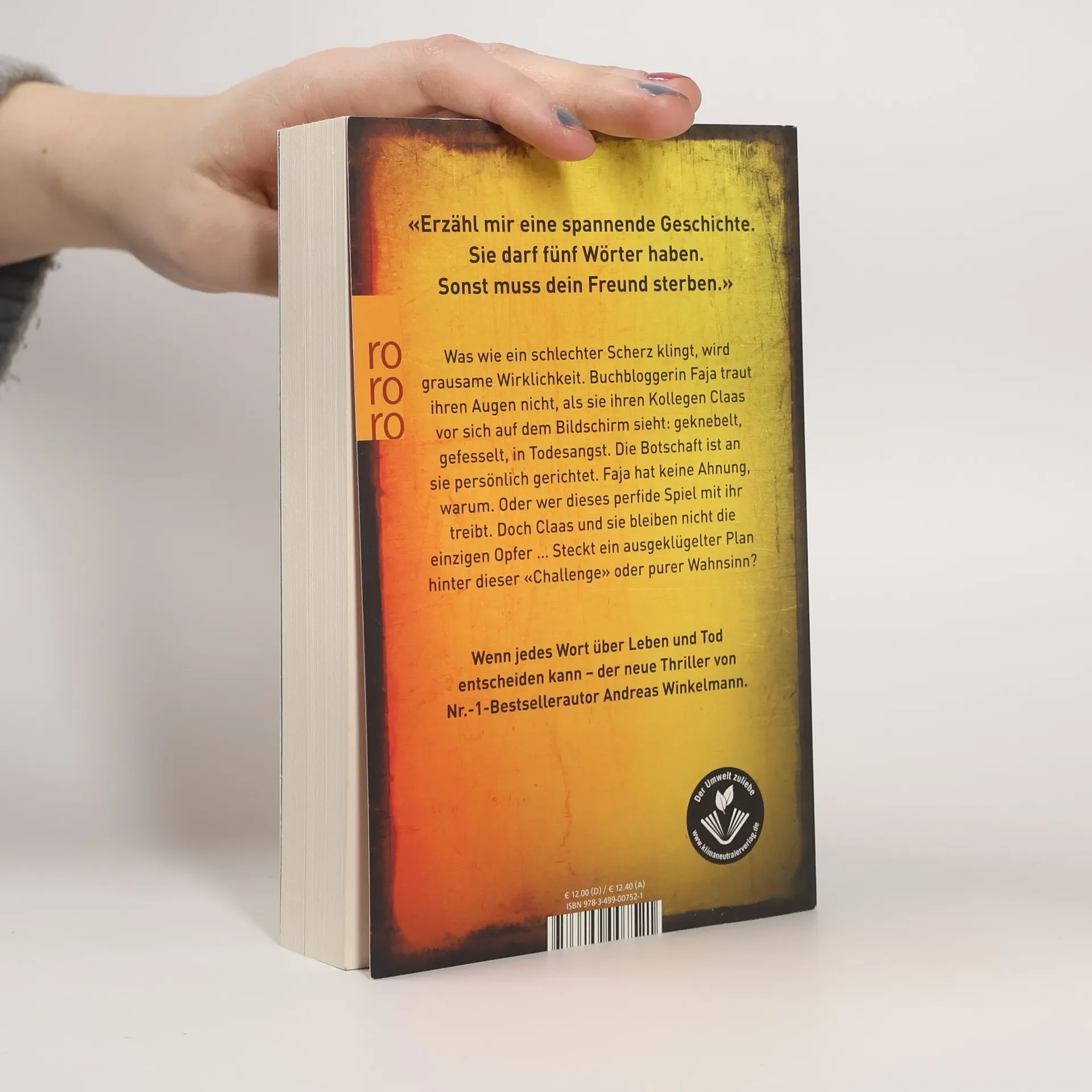 Wenn jedes Wort über Leben und Tod entscheiden kann - der neue Thriller von Nr.-1-Bestsellerautor Andreas Winkelmann. «Erzähl mir eine spannende Geschichte. Sie darf fünf Wörter haben. Sonst muss dein Freund sterben.» Was wie ein schlechter Scherz klingt, wird grausame Wirklichkeit. Buchbloggerin Faja traut ihren Augen nicht, als sie ihren Kollegen Claas vor sich auf dem Bildschirm sieht: geknebelt, gefesselt, in Todesangst. Die Botschaft ist an sie persönlich gerichtet. Faja hat keine Ahnung, warum. Oder wer dieses perfide Spiel mit ihr treibt. Doch Claas und sie bleiben nicht die einzigen Opfer … Steckt ein ausgeklügelter Plan hinter der «Challenge» oder purer Wahnsinn?