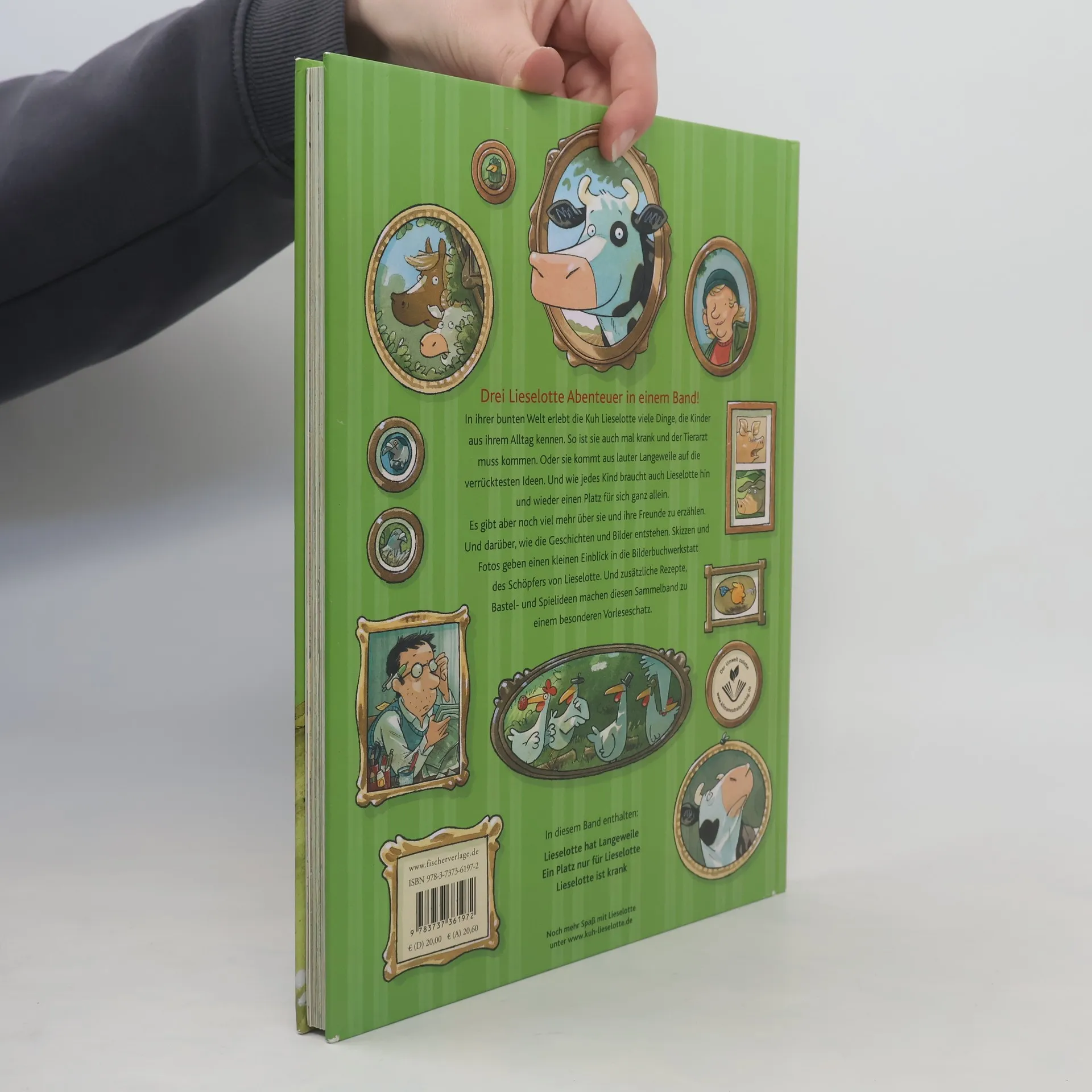 Drei Lieselotte-Abenteuer in einem Band! Lieselotte ist und bleibt die Lieblingskuh aller Kinder. In ihrer bunten Welt erlebt Lieselotte viele Dinge, die Kinder aus ihrem Alltag kennen. Sie ist auch mal krank und der Tierarzt muss kommen. Aus lauter Langeweile kommt sie auf die verrücktesten Ideen. Und wie jedes Kind braucht Lieselotte hin und wieder auch mal einen Platz für sich ganz allein. Es gibt aber noch viel mehr über sie und ihre Freunde zu erzählen. Und darüber, wie die Geschichten und Bilder entstehen. Ein spannender Einblick in die Bilderbuchwerkstatt von Alexander Steffensmeier und weitere Informationen zu Lieselotte machen diesen Sammelband zu einem besonderen Vorleseschatz. Mit vielen Extras: Rezepte Bastelideen Spielideen Skizzen und Fotos Im Sammelband enthalten: Lieselotte hat Langeweile, Lieselotte ist krank, Ein Platz nur für Lieselotte Lieselottes Bilderbuch-Abenteuer zum Vorlesen für Kinder ab 4 Jahren: kunterbunte, wimmelige Bilder und lustige Geschichten laden zum Entdecken, Zuhören und Kichern ein. Absolute Bilderbuchklassiker und Lieblingsbücher für Kindergartenkinder und große Lieselotte-Fans!