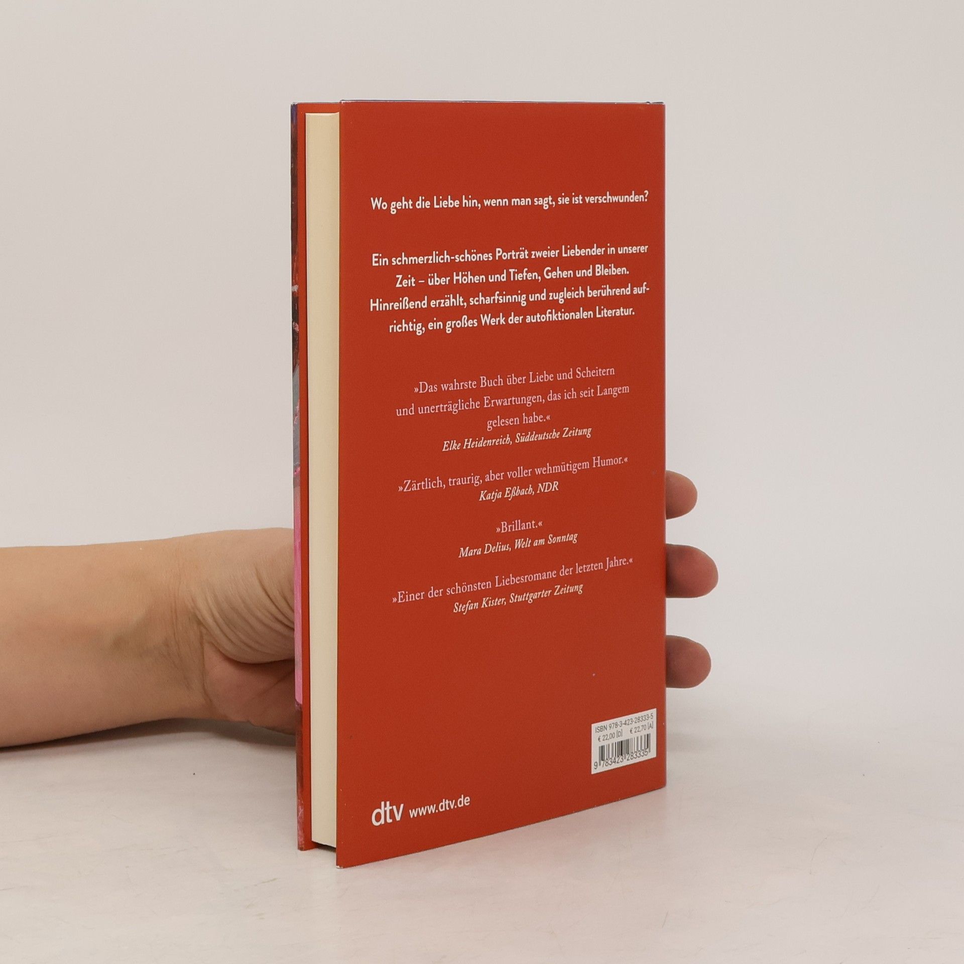 Wo geht die Liebe hin, wenn man sagt, sie ist verschwunden? Eine Frau will ihren Mann verlassen. Nach vielen Jahren Zusammenleben und Ehe ist sie entschlossen und bestürzt zugleich: Wie konnte es nur dazu kommen? Während sie ihr Fortgehen plant, begibt sie sich in ihren Gedanken weit zurück. Da waren die rauschhaften Jahre der Verliebtheit, an der Universität, zu zweit im Ausland und später mit den kleinen Kindern, aber da gab es auch die Kehrseite – Momente, die zu Wendepunkten wurden und das Scheitern schon vorausahnen ließen. Doch ist etwas überhaupt gescheitert, wenn es so lange dauert? Julia Schoch legt frei, was im Alltag eines Paares oft verborgen ist: die Liebesmuster, die Schönheit auch in der Ernüchterung. Ein Loblied auf die Liebe.