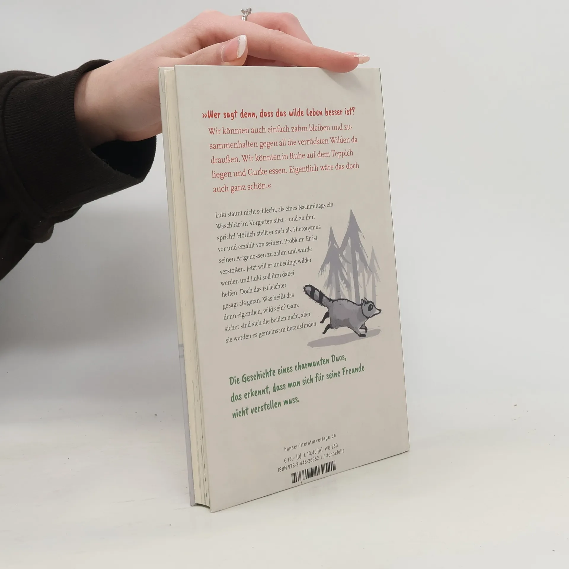 Auch Waschbären brauchen beste Freunde! Annette Pehnt über ein charmantes Außenseiter-Duo, illustriert von Henrike Wilson Hieronymus hat ein Problem: Der höfliche Waschbär ist seinen Artgenossen zu zahm und wurde verstoßen. Als er deshalb in Lukis Vorgarten auftaucht und um Hilfe bittet, ist dieser sofort dabei. Hieronymus möchte wilder werden, und das könnte auch Luki nicht schaden. Dann würden die anderen Kinder aufhören, ihn Mamasöhnchen zu nennen. Doch was heißt das eigentlich – wild sein? Gurke essend auf dem Teppich zu liegen zählt ja wohl kaum. Ein Plan muss her! Die Suche nach der Wildheit führt in den Zoo, auf den Schulhof und bis in eine alte Telefonzelle. Dabei müssen Luki und Hieronymus nicht nur ganz schön viel Mut aufbringen und über sich selbst hinauswachsen, sie finden auch neue Freunde.