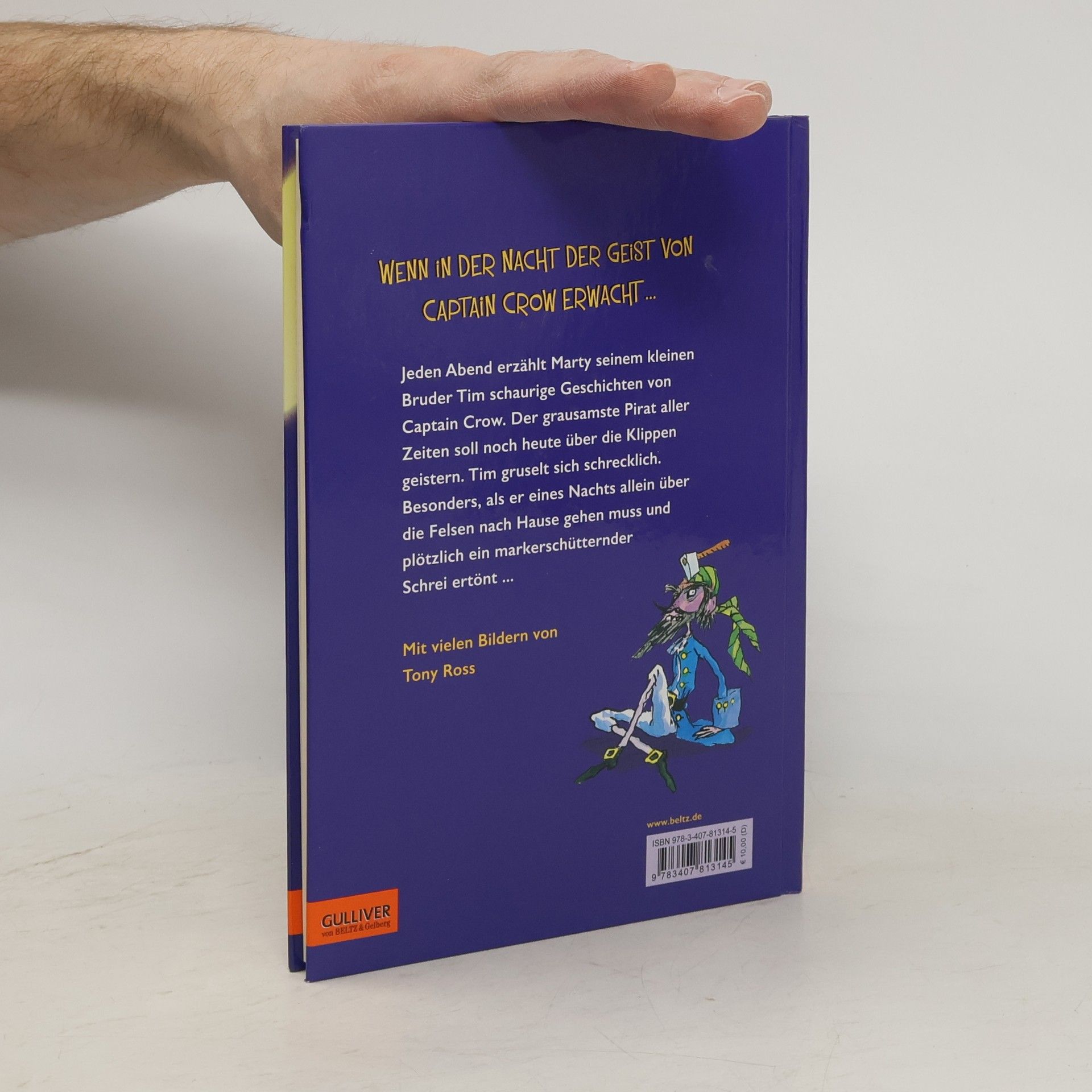 Jeden Abend erzählt Marty seinem kleinen Bruder Tim schaurige Geschichten von Captain Crow – dem grausamsten Piraten aller Zeiten. Der soll noch heute über die Klippen geistern. Tim gruselt sich schrecklich – besonders, als er eines Nachts allein über die Felsen nach Hause gehen muss und plötzlich ein markerschütternder Schrei ertönt ... Eine meisterhaft erzählte Geschichte vom Erfolgsautor Eoin Colfer - spannend und witzig zugleich. Mit vielen Bildern von Tony Ross.