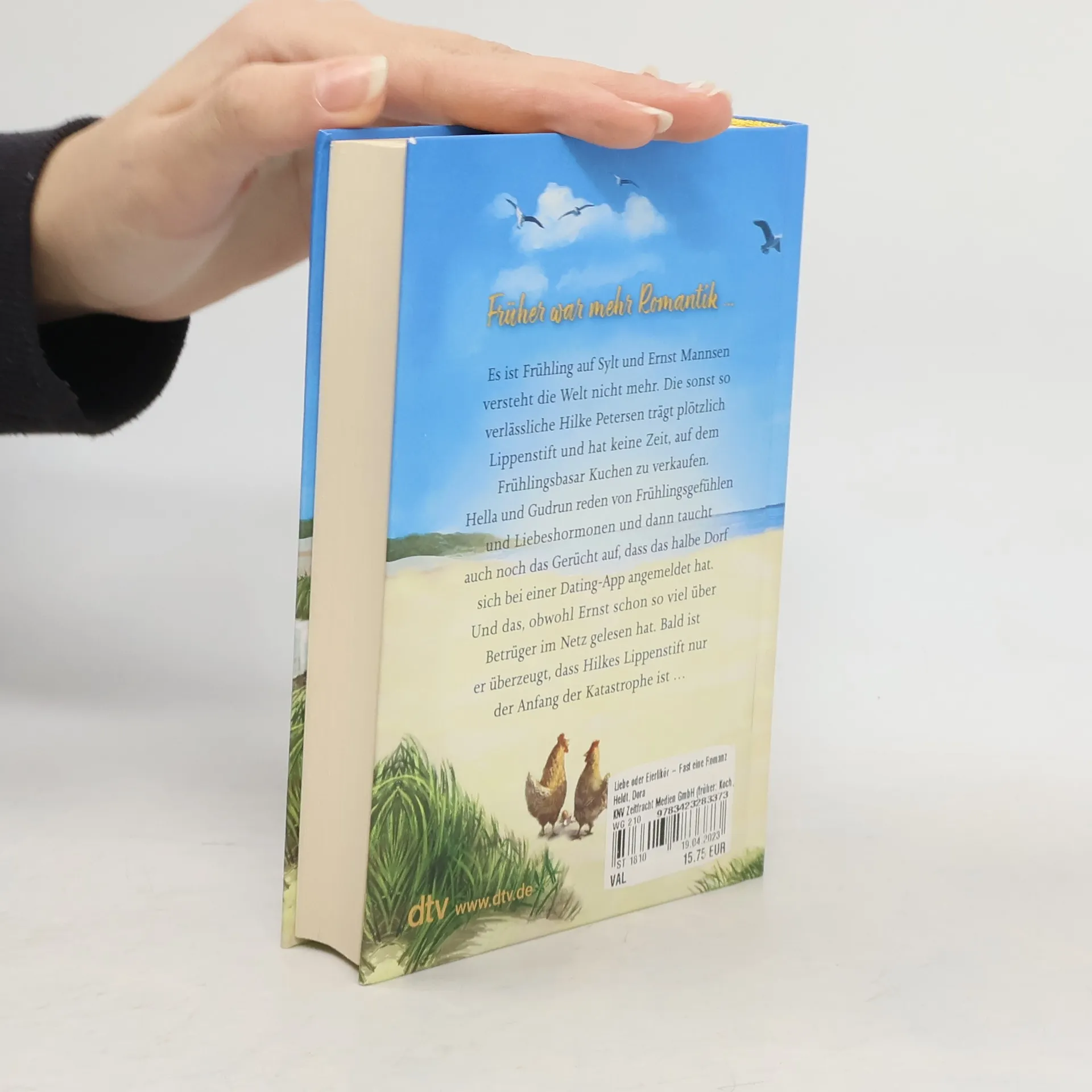 Früher war mehr Romantik ... Ernst Mannsen versteht die Welt nicht mehr. Die sonst so verlässliche Hilke Petersen trägt plötzlich Lippenstift und hat keine Zeit, auf dem Frühlingsbazar Kuchen zu verkaufen. Hella und Gudrun reden von Frühlingsgefühlen und Liebeshormonen und vermuten, dass Hilke eine Romanze hat. Und plötzlich taucht auch noch das Gerücht auf, dass das halbe Dorf sich bei einer Dating-App angemeldet hat, die Liebe oder Eierlikör heißt. Und das, obwohl Ernst schon so viel über Betrüger im Netz gelesen hat. Er vermutet, dass der Lippenstift nur der Anfang der Katastrophe ist, in die Hilke sich begibt, und ist entschlossen, das zu verhindern. Mithilfe seines Enkels Mats und Freundin Hella forscht er undercover nach, nicht ahnend, wie schnell man sich auf einem Date wiederfinden kann …