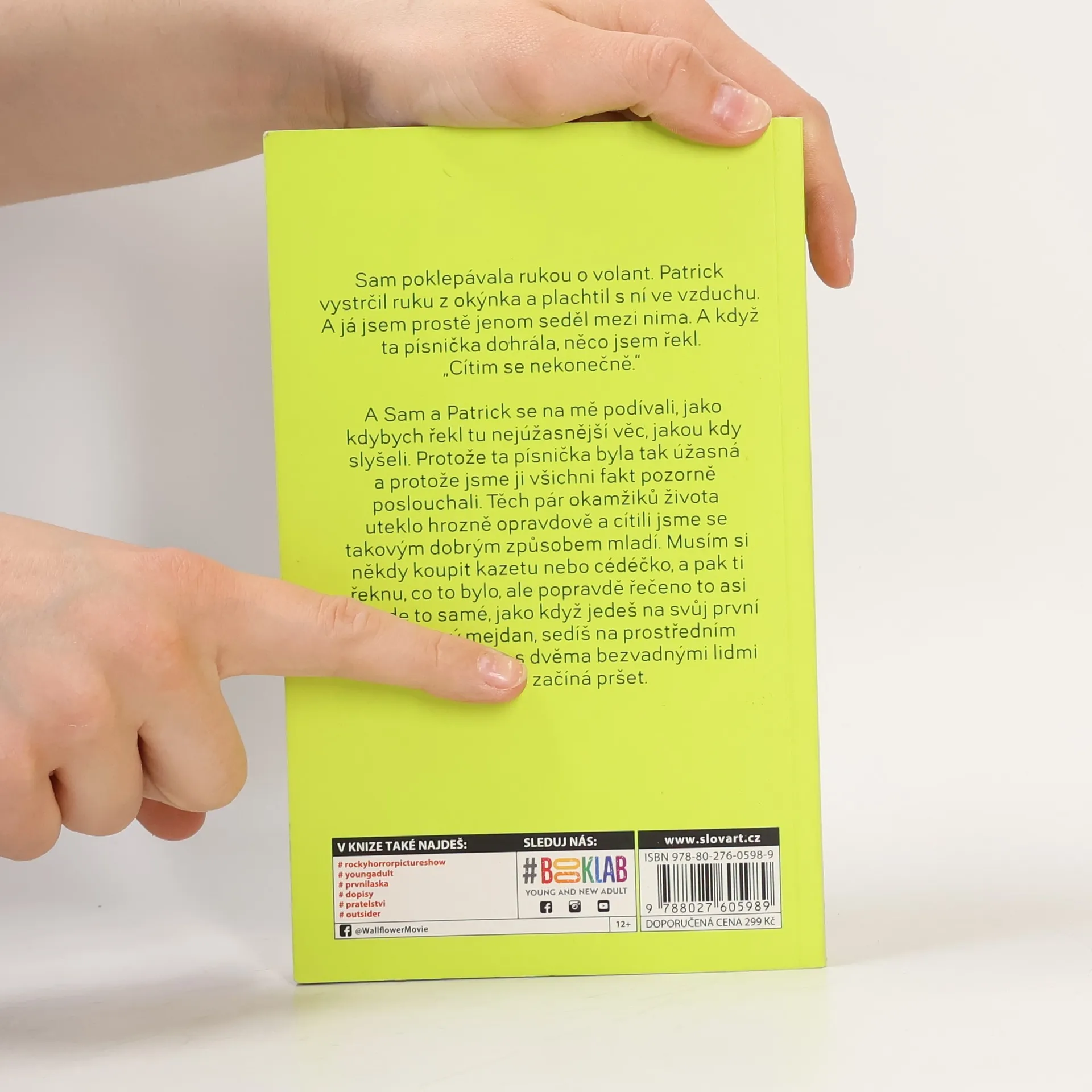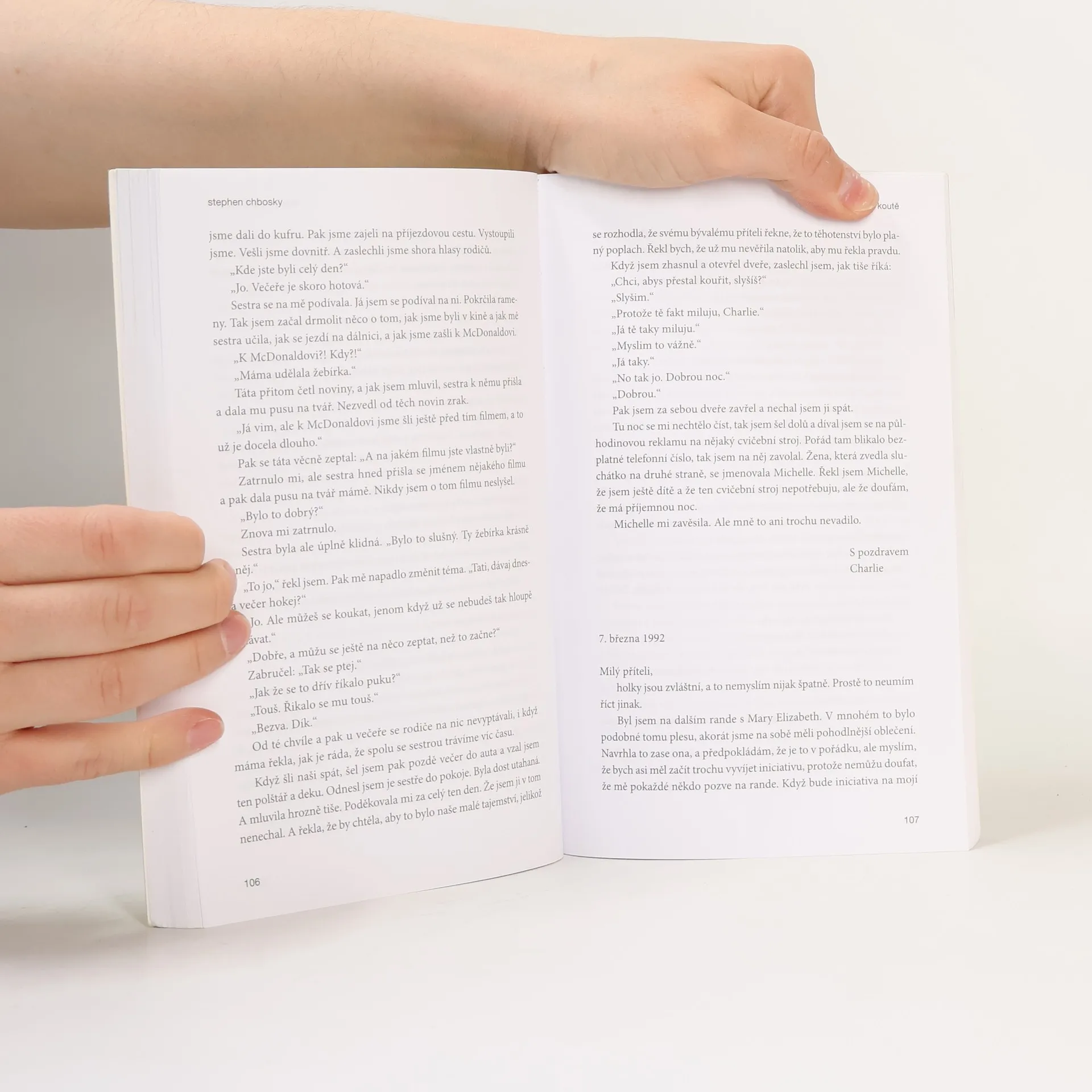 Když člověk stojí v koutě, může si všimnout spousty úžasných věcí. Ale pak přijde chvíle, kdy je třeba vykročit na parket a začít opravdu žít. Strhujícímu románu Stephena Chboskeho o dilematu mezi nečinností a touhou se dostalo nadšeného přijetí, vyvolal polemiku a získal miliony oddaných čtenářů. Příběh o dospívání na střední škole, který Charlie vypráví v dopisech, je otevřenější a důvěrnější než leckterý deník, zároveň vtipný i sžíravý. Nevíme, kde Charlie bydlí, ani komu píše - máme jen slova, o která se rozhodl podělit. Zmítán touhou žít svůj vlastní život i touhou vymanit se z role, která mu připadla, prozkoumává dosud neznámé území. Před ním se otvírá svět prvních lásek, rodinných dramat i nových přátelství. Svět sexu, drog a Rocky Horror Picture Show, kde klíčem ke štěstí může být například ta správná píseň, díky níž se můžete řítit tunelem a cítit se nekonečně. V Charliem se Chboskemu podařilo stvořit vypravěče, který vás uhrane a přenese zpět do divokých a intenzivně prožívaných dní na prahu dospělosti, kdy se život podobal jízdě na horské dráze.