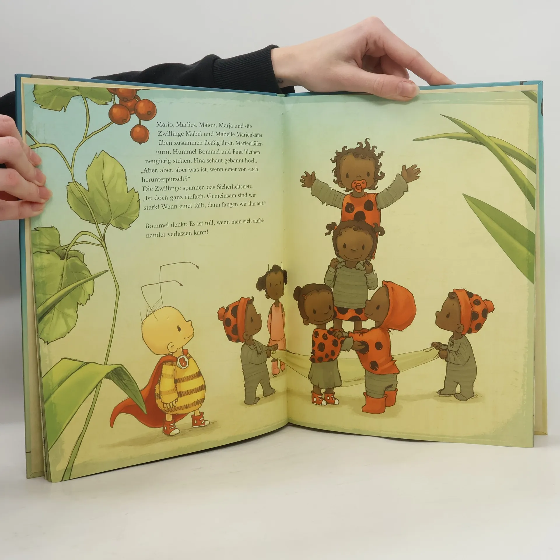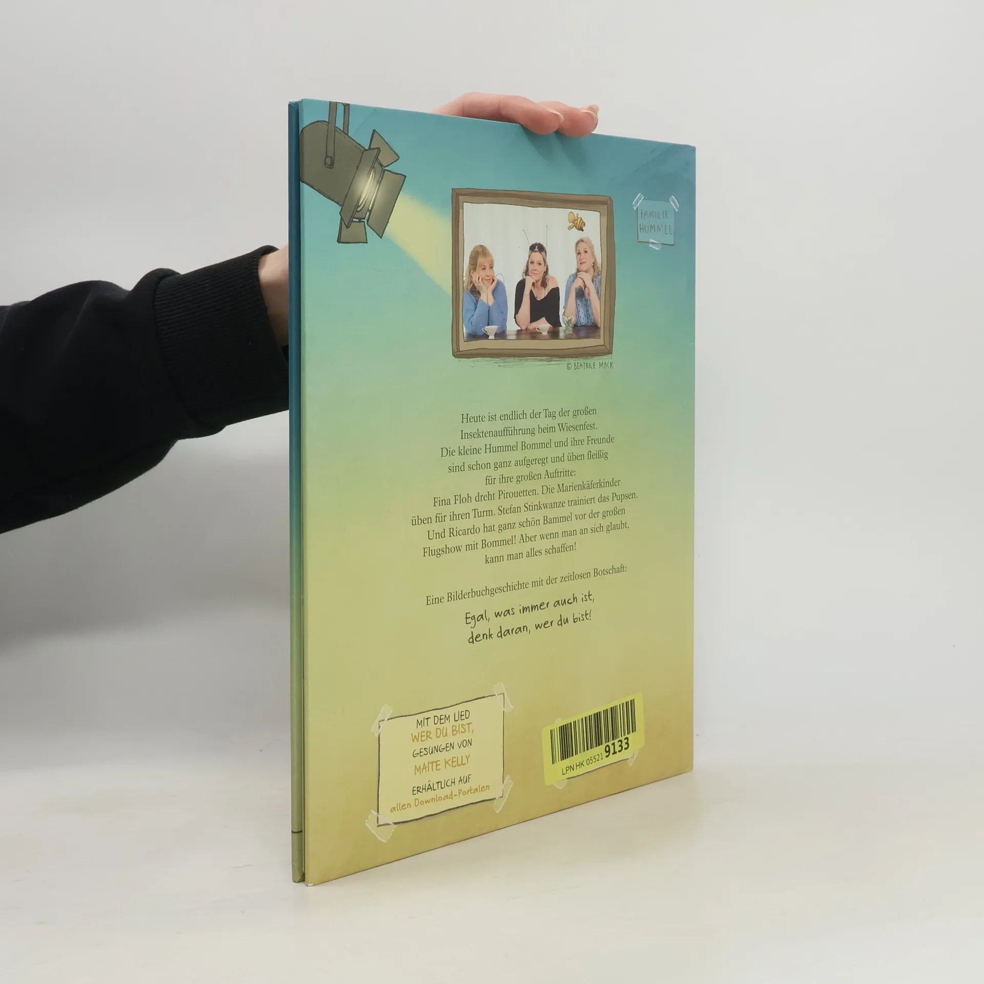 Der Bilderbuch-Bestseller "Die kleine Hummel Bommel". Ein Bilderbuch mit der zeitlosen Botschaft: Egal, was immer auch ist, denk daran, wer du bist! Mit dem Lied "Denk daran, wer du bist", dem tollen Song nach "Du bist du", gesungen von MAITE KELLY, erhältlich auf allen Streamingportalen. Wenn man an sich glaubt, kann man alles schaffen! Heute ist endlich der Tag der großen Insektenaufführung beim Wiesenfest. Die kleine Hummel Bommel und ihre Freunde sind schon ganz aufgeregt und üben fleißig für ihre großen Auftritte: Fina Floh dreht Pirouetten. Die Marienkäferkinder üben für ihren Turm. Stefan Stinkwanze trainiert das Pupsen. Und Ricardo hat ganz schön Bammel vor der großen Flugshow mit Bommel! Aber wenn man an sich glaubt, kann man alles schaffen! Eine Bilderbuchgeschichte mit der zeitlosen Botschaft: Egal, was immer auch ist, denk daran, wer du bist! Die Geschichte eignet sich wunderbar als Geschenk für Kinder ab 3 Jahren. Von den Bestsellerautorinnen Britta Sabbag und Maite Kelly, liebevoll illustriert von Joëlle Tourlonias. Zum Vorlesen für Kinder ab 3 Jahren Für kleine und große Fans der Hummel Bommel Liebevolle Illustrationen und eine starke Botschaft, die zu Mut und Selbstvertrauen ermutigt Weitere Informationen, Spiele und Downloads auf http://www.hummelbommel.de