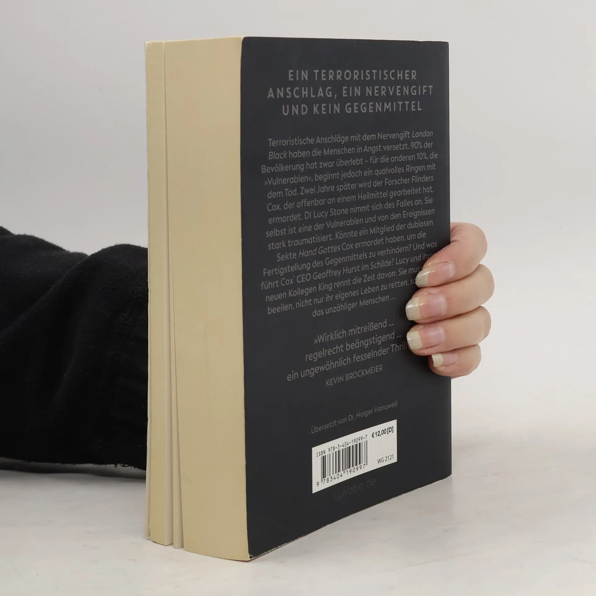 Ein terroristischer Anschlag, ein Nervengift und kein Gegenmittel Terroristische Anschläge mit dem Nervengift London Black haben die Menschen in Angst versetzt. 90% der Bevölkerung hat zwar überlebt. Für die anderen 10%, die »Vulnerablen«, beginnt jedoch ein qualvolles Ringen mit dem Tod. Zwei Jahre später wird der Forscher Flinders Cox, der offenbar an einem Heilmittel gearbeitet hat, ermordet. DI Lucy Stone nimmt sich des Falles an. Sie selbst ist eine der Vulnerablen und von den Ereignissen stark traumatisiert. Könnte ein Mitglied der dubiosen Sekte Hand Gottes Cox ermordet haben, um die Fertigstellung des Gegenmittels zu verhindern? Und was führt Cox' CEO Geoffrey Hurst im Schilde? Lucy und ihrem neuen Kollegen King rennt die Zeit davon: Sie muss sich beeilen, nicht nur ihr eigenes Leben zu retten, sondern das unzähliger Menschen ...