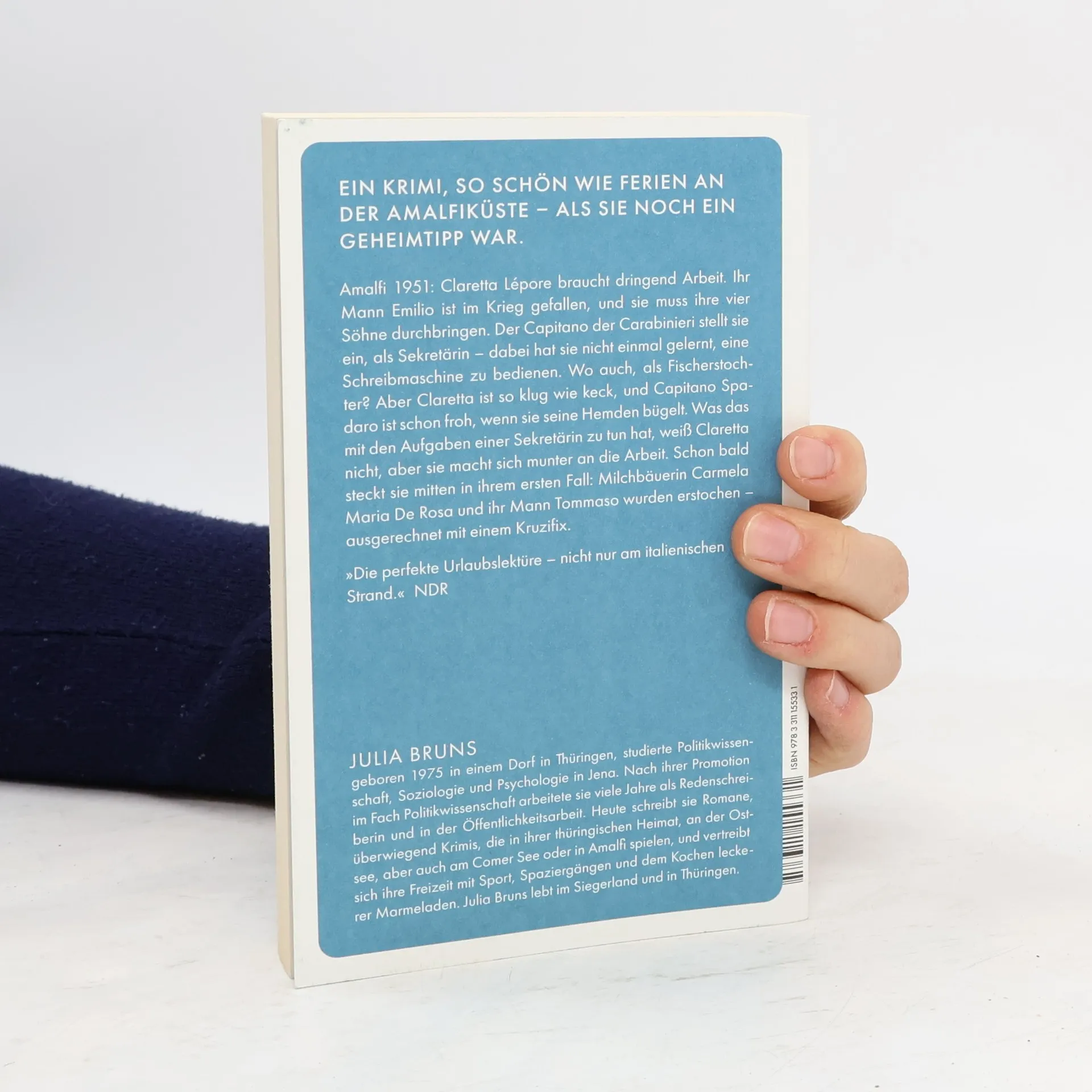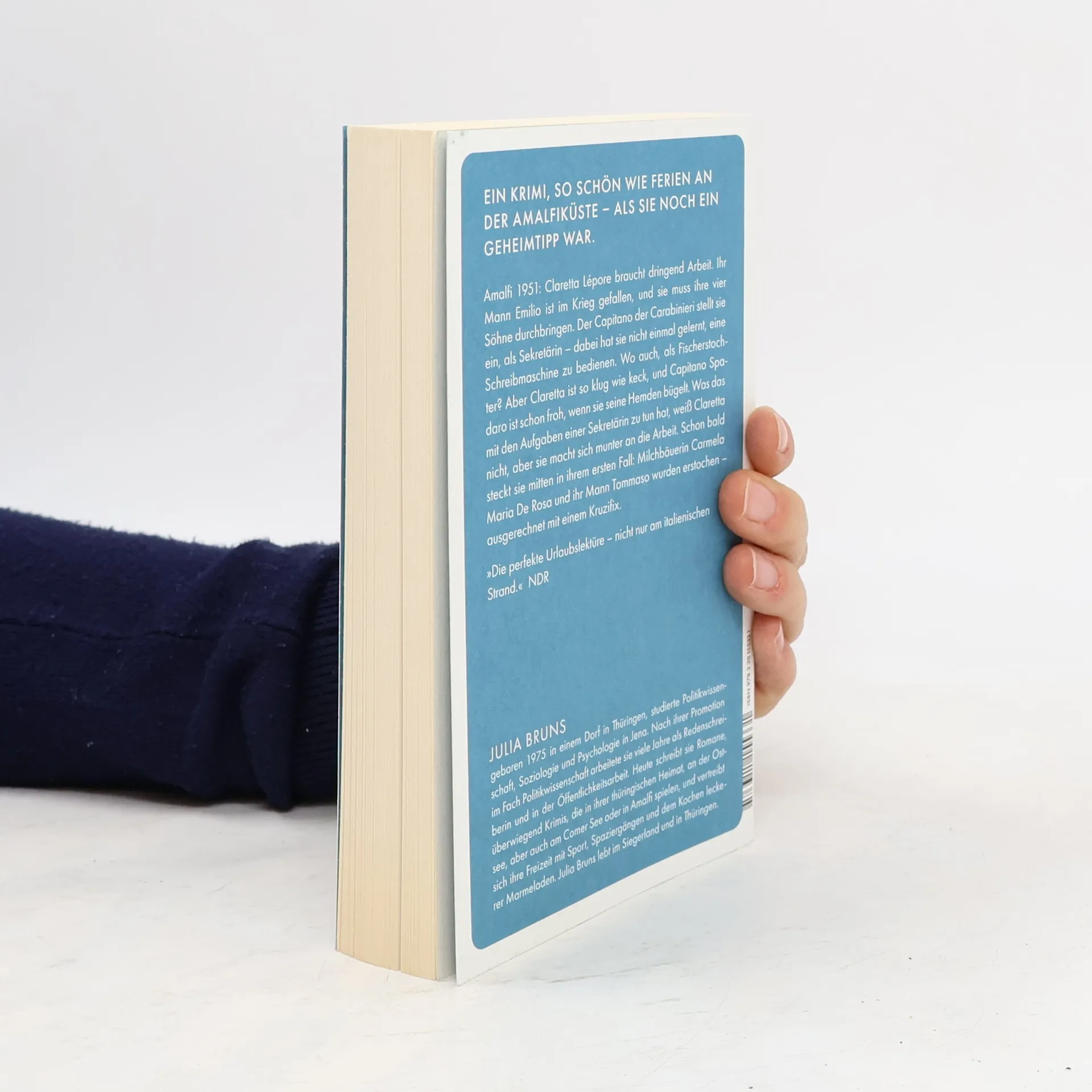 Amalfi 1951: Claretta Lépore braucht dringend Arbeit. Ihr Mann Emilio ist im Krieg gefallen, und sie muss ihre vier Söhne durchbringen. Der Capitano der Carabinieri stellt sie ein, als Sekretärin – dabei hat sie nicht einmal gelernt, eine Schreibmaschine zu bedienen. Wo auch, als Fischerstochter? Aber Claretta ist so klug wie keck, und Capitano Spadaro ist schon froh, wenn sie seine Hemden bügelt. Was das mit den Aufgaben einer Sekretärin zu tun hat, weiß Claretta nicht, aber sie macht sich munter an die Arbeit. Schon bald steckt sie mitten in ihrem ersten Fall: Milchbäuerin Carmela Maria De Rosa und ihr Mann Tommaso wurden erstochen – ausgerechnet mit einem Kruzifix. Ein Krimi, so schön wie Ferien an der Amalfiküste – als sie noch ein Geheimtipp war.