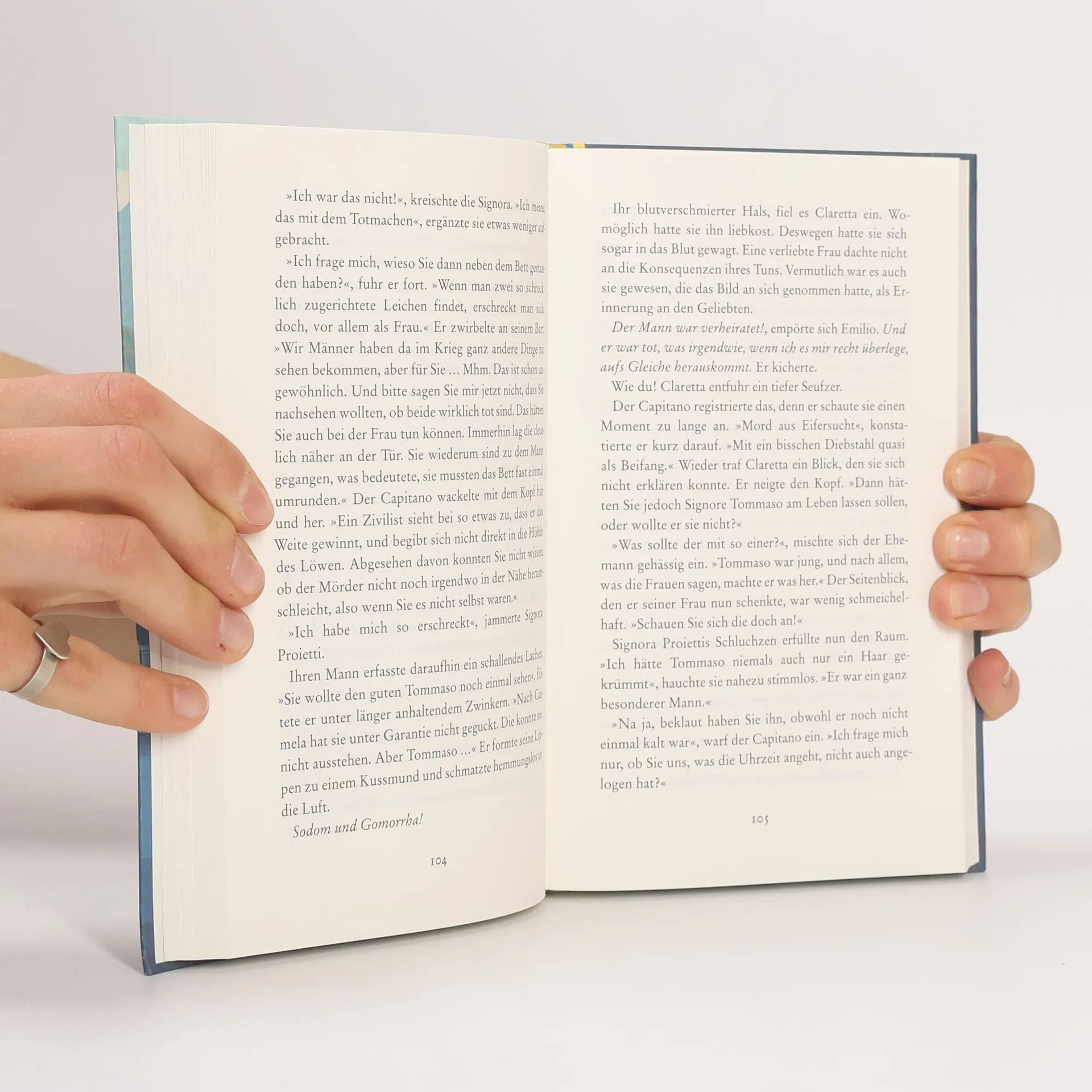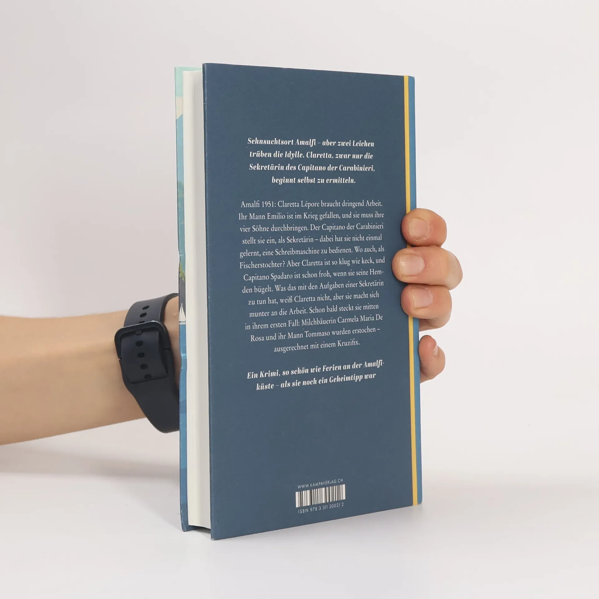 Amalfi 1951: Claretta Lépore braucht dringend Arbeit. Ihr Mann Emilio ist im Krieg gefallen, und sie muss ihre vier Söhne allein durchbringen. Ausgerechnet der Capitano der Carabinieri stellt sie schließlich als Sekretärin ein – dabei hat sie nicht einmal gelernt, eine Schreibmaschine zu bedienen. Wo auch, als Fischerstochter aus einem kleinen Dorf? Aber Claretta ist so klug wie keck, und Capitano Spadaro ist schon froh, wenn sie das Büro putzt und seine Hemden bü- gelt. Was das mit den Aufgaben einer Sekretärin zu tun hat, weiß Claretta nicht, aber sie macht sich munter an die Arbeit. Und ehe sie sichs versieht, steckt sie mitten in ihrem ersten Fall: In einem abgelegenen Bauernhaus wurden zwei Leichen gefunden: Milchbäuerin Carmela Maria De Rosa und ihr Mann Tommaso wurden erstochen – ausgerechnet mit einem Kruzifix. Claretta fällt fast vom Glauben ab, als Spadaro ihr das Protokoll diktiert. Nach Feierabend macht sie sich am Tatort selbst ein Bild – und stößt auf einige Ungereimtheiten, die dem Capitano bei der Aufklärung des Falls nützlich sein könnten.