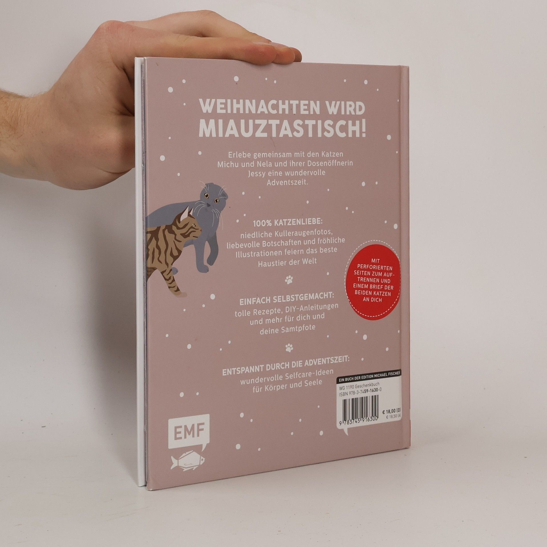 Katzenfans aufgepasst: Weihnachten wird purrfect! Denn dank diesem Adventskalender-Buch von und mit den TikTok -Katzen-Stars Michu und Nela vom Kanal michu. nela kannst du Tag für Tag eine neue Überraschung hinter einem der Türchen entdecken, indem du die perforierte Seite auftrennst. Merry catmas to you! Das perfekte Geschenk für alle Katzenfreundinnen und Katzenfreunde . Zum Schnurren : Verwöhne dich und deine Katze mit tollen DIY-Tutorials, leckeren Rezepten, wohltuenden Selfcare-Ideen und mehr 24 Türchen voller katziger Überraschungen versüßen dir die Weihnachtszeit Katzenweihnachten für alle: Ob du selbst eine Katze besitzt oder (noch) ohne flauschige Samtpfote bist: Dank der bunten Mischung in den Türchen kommt jeder Tierfreund auf seine Kosten Ideal auch als Geschenk in der Vorweihnachtszeit für Erwachsene und Kinder ab 12 Jahren